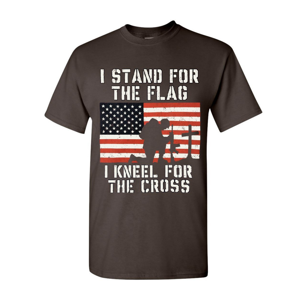 I STAND FOR THE FLAG I KNEEL FOR THE CROSS t-shirt patriotic military tee brown