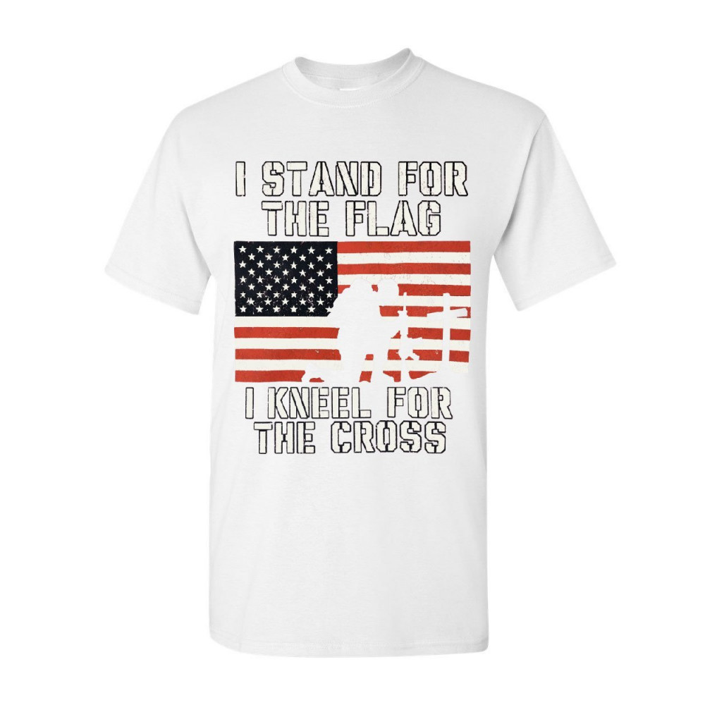 I STAND FOR THE FLAG I KNEEL FOR THE CROSS t-shirt patriotic military tee white