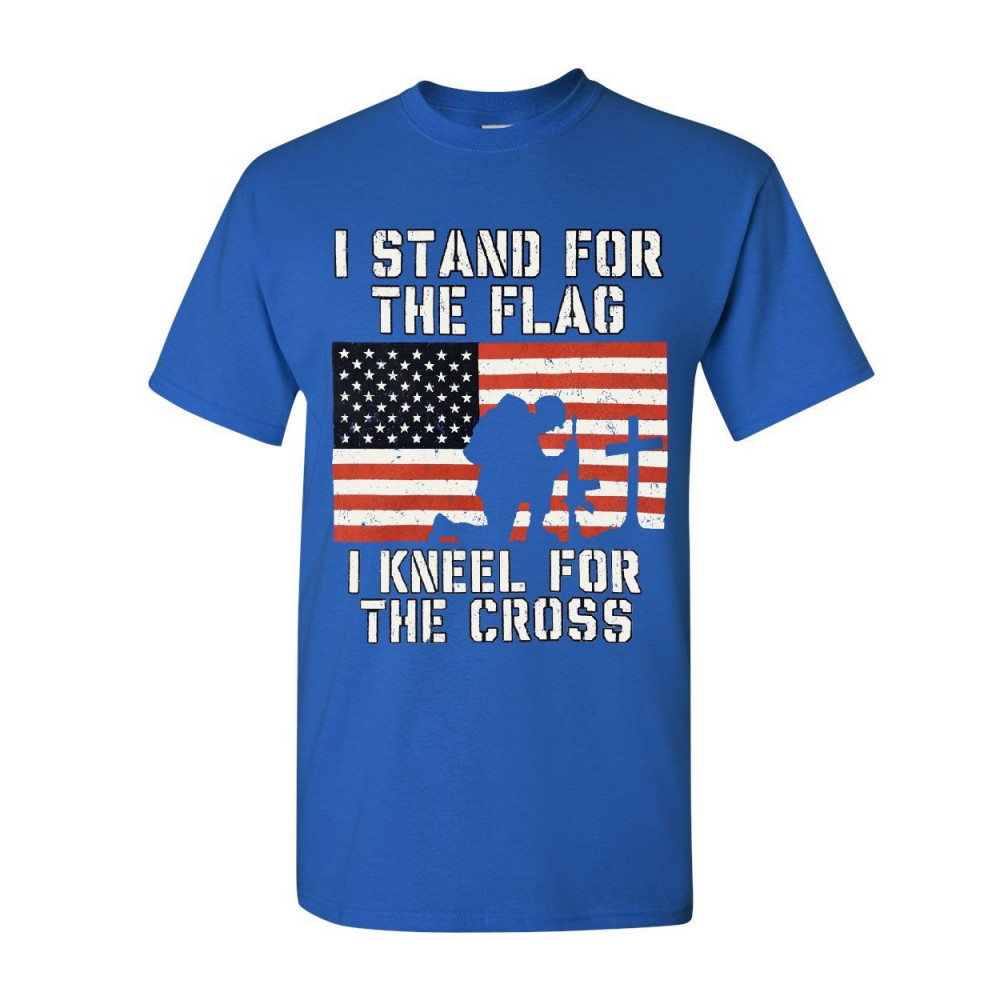 I STAND FOR THE FLAG I KNEEL FOR THE CROSS t-shirt patriotic military tee royal blue