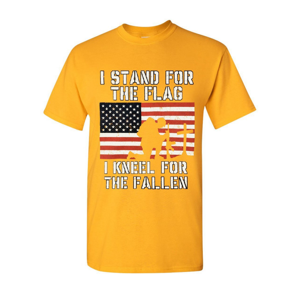 I STAND FOR THE FLAG I KNEEL FOR THE FALLEN t-shirt patriotic military tee yellow