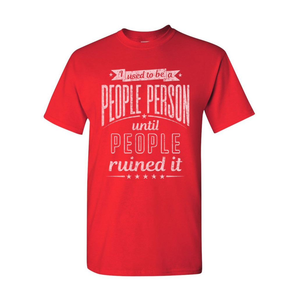I USED TO BE A PEOPLE PERSON t-shirt funny sarcasm humor friends mens tee shirt red