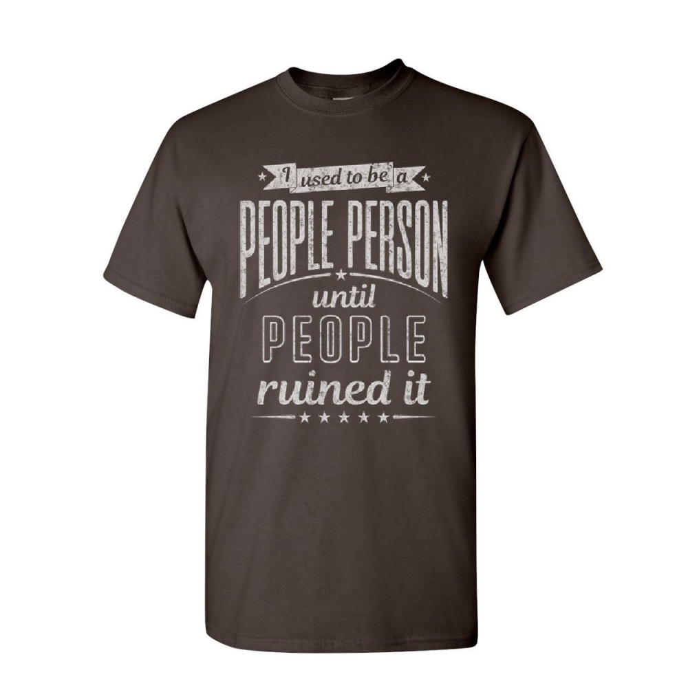 I USED TO BE A PEOPLE PERSON t-shirt funny sarcasm humor friends mens tee shirt brown