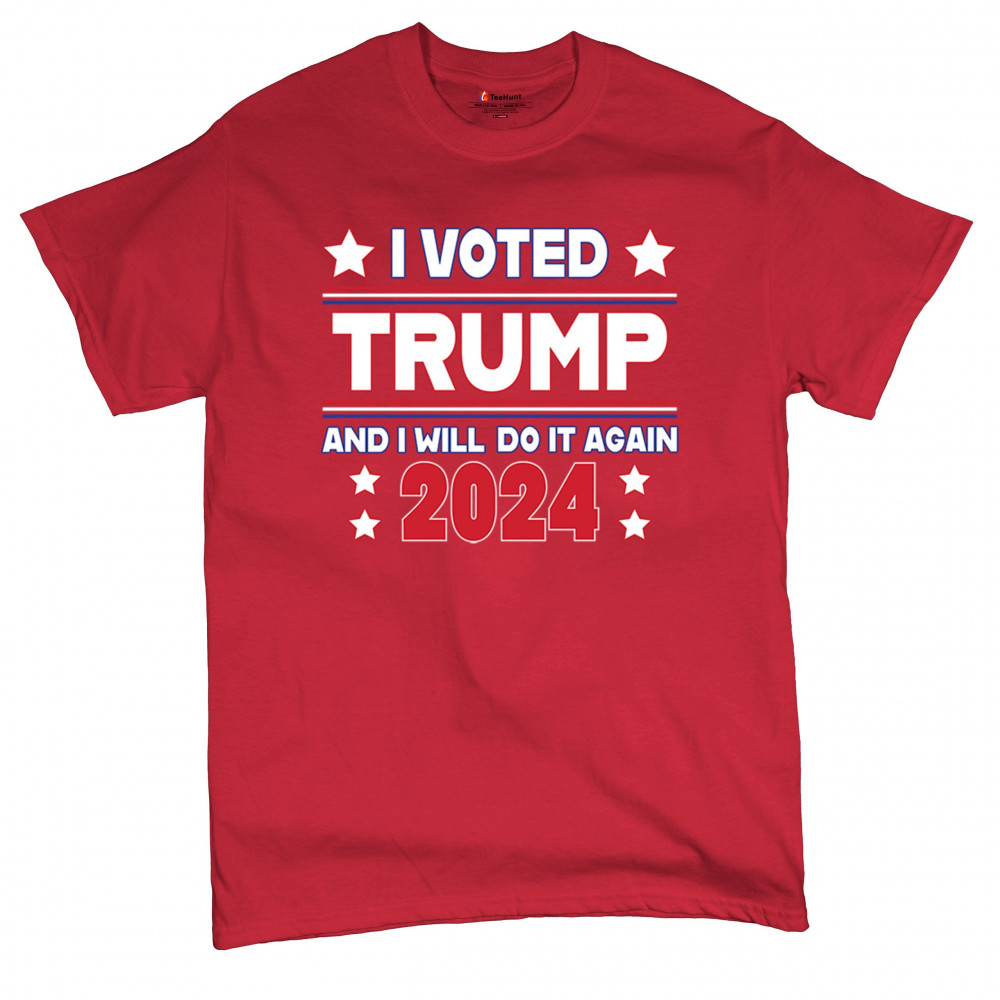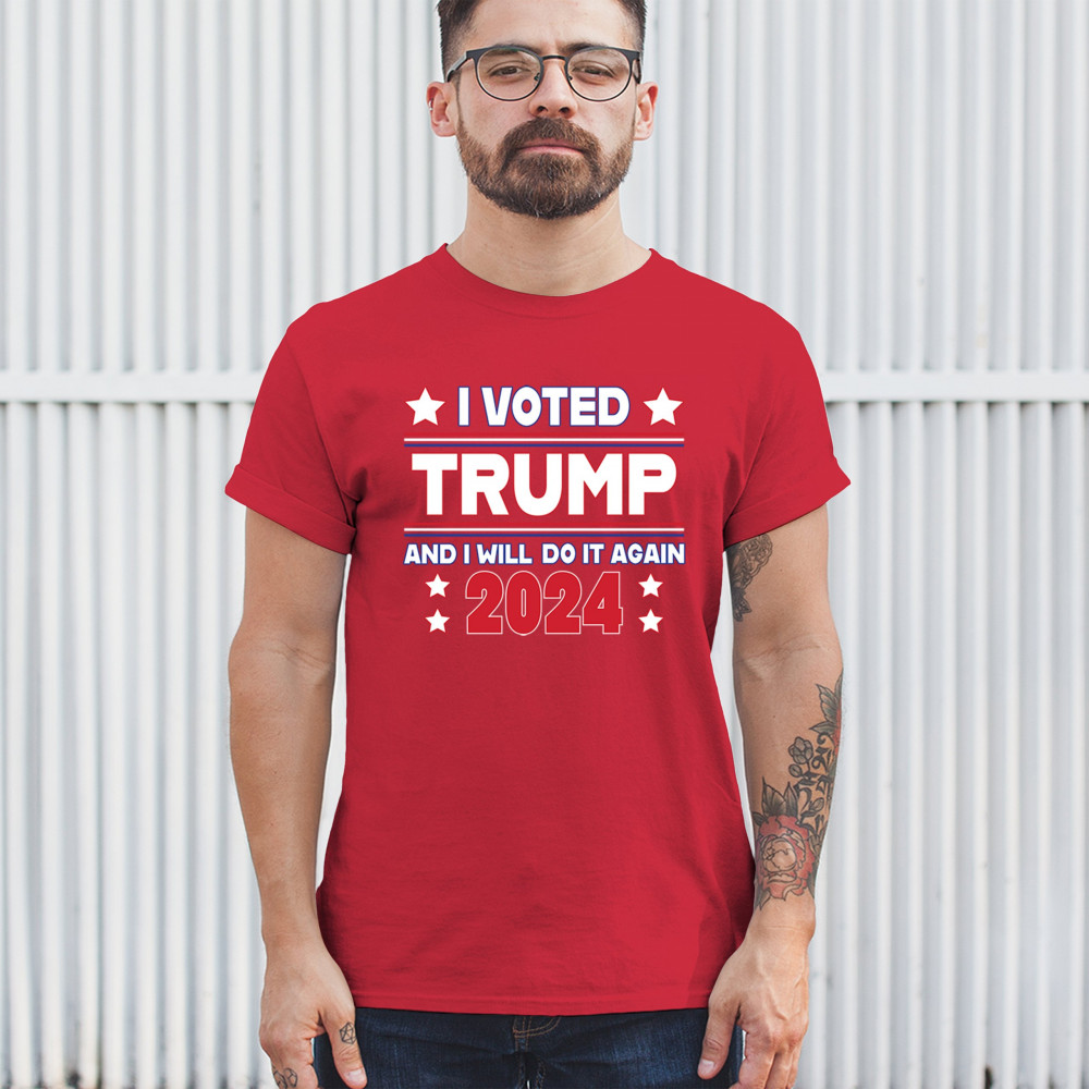 Stand tall as a dedicated Trump supporter with our "I Voted Trump and Will Do It Again 2024" design, showcasing your unwavering commitment to the America First agenda. Let the world know that you stand ready to cast your vote for President Trump once more