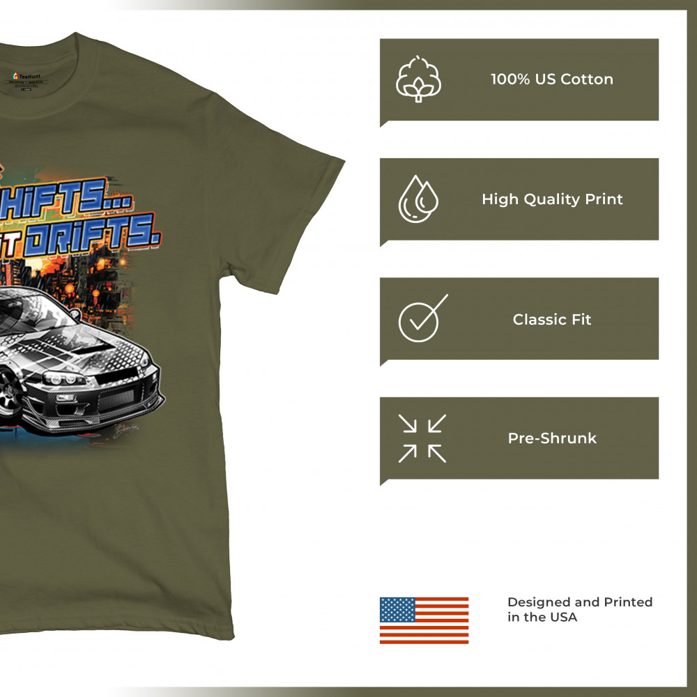 Dive into the world of high-speed drifting with our "If It Shifts, It Drifts" design. Featuring a detailed car against a vibrant cityscape, this is perfect for car enthusiasts and racing fans. Made from premium, soft fabric, it offers superior comfort and durability for all-day wear. Ideal for car shows, racing events, or casual outings, this design lets you express your love for the thrill of the drift in style. It’s also a fantastic gift for any car lover, adding a dynamic touch to their collection.