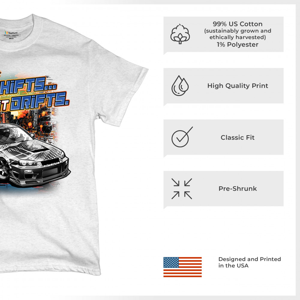 Dive into the world of high-speed drifting with our "If It Shifts, It Drifts" design. Featuring a detailed car against a vibrant cityscape, this is perfect for car enthusiasts and racing fans. Made from premium, soft fabric, it offers superior comfort and durability for all-day wear. Ideal for car shows, racing events, or casual outings, this design lets you express your love for the thrill of the drift in style. It’s also a fantastic gift for any car lover, adding a dynamic touch to their collection.