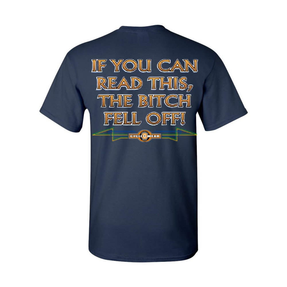 IF YOU CAN READ THIS, THE BITCH FELL OFF t-shirt funny biker tee shirt navy blue
