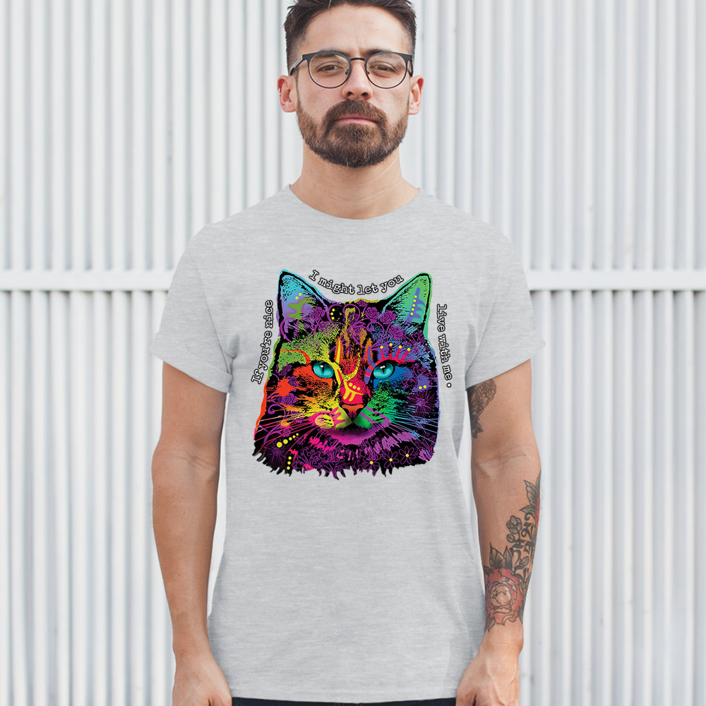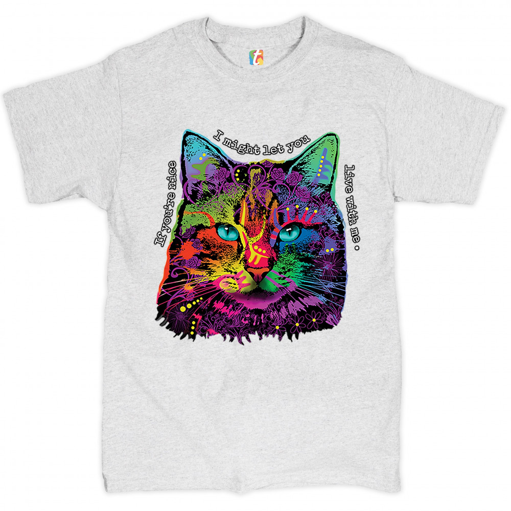 IF YOU'RE NICE I MIGHT LET YOU LIVE WITH ME t-shirt andy maxx cat men's tee ash gray