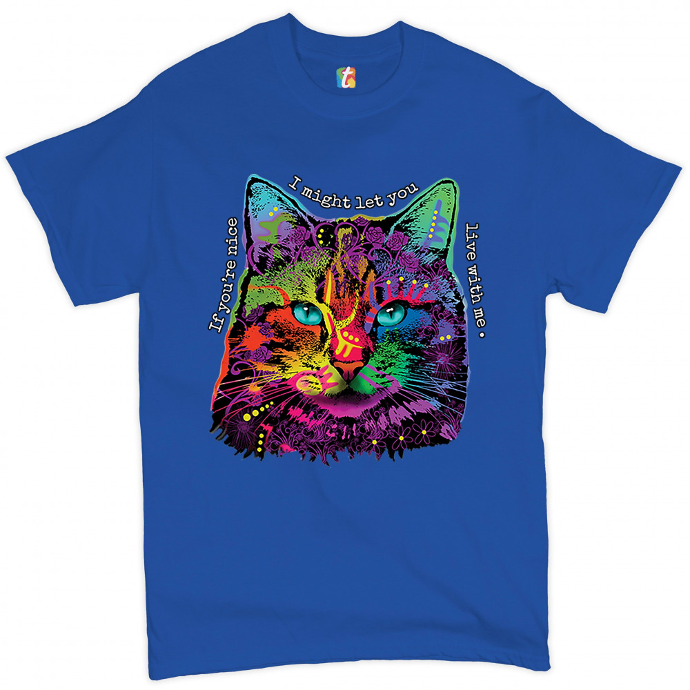 IF YOU'RE NICE I MIGHT LET YOU LIVE WITH ME t-shirt andy maxx cat men's tee royal blue