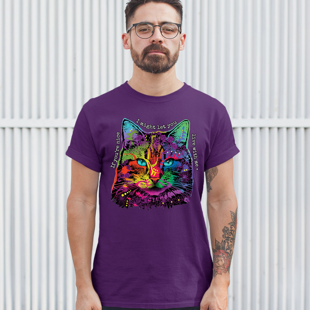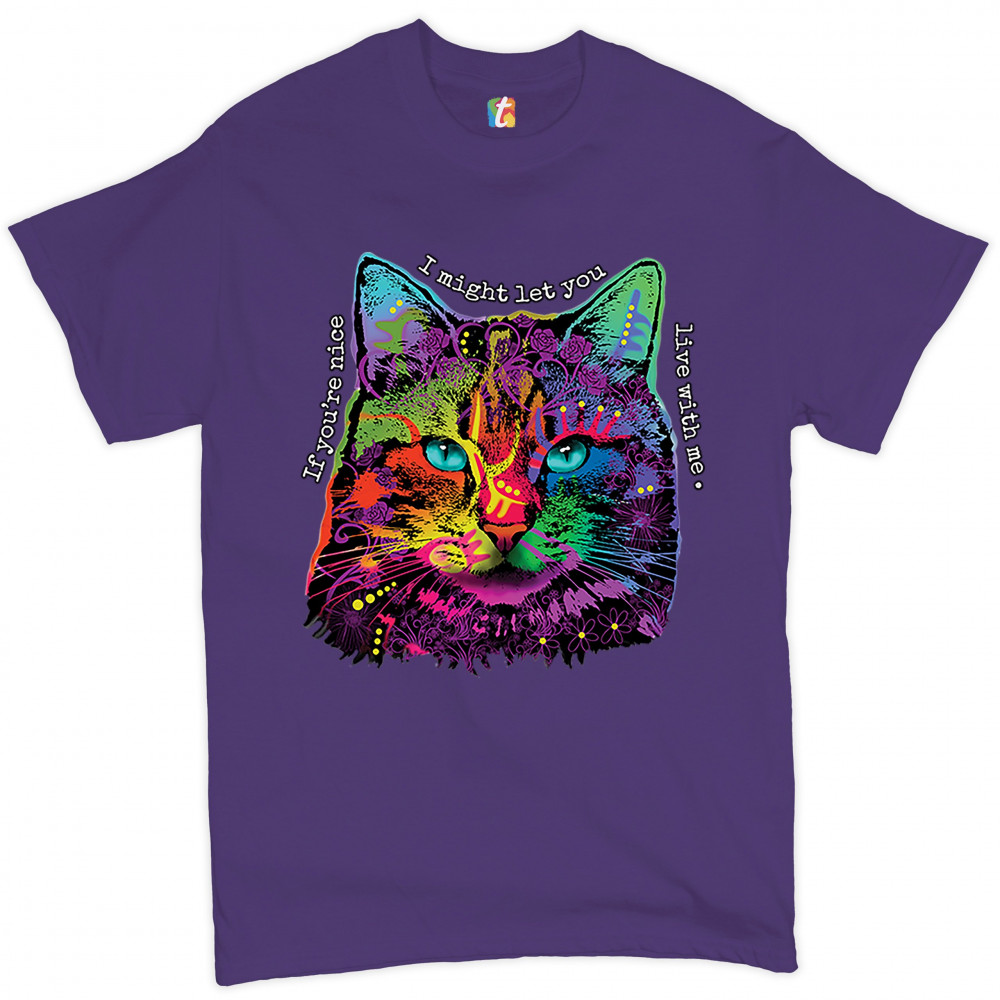 IF YOU'RE NICE I MIGHT LET YOU LIVE WITH ME t-shirt andy maxx cat men's tee purple