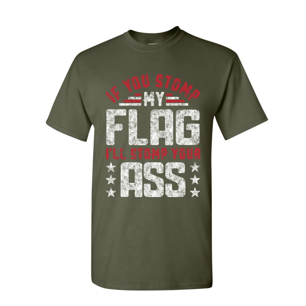 IF YOU STOMP MY FLAG t-shirt defend american flag patriot usa mens tee shirt military green