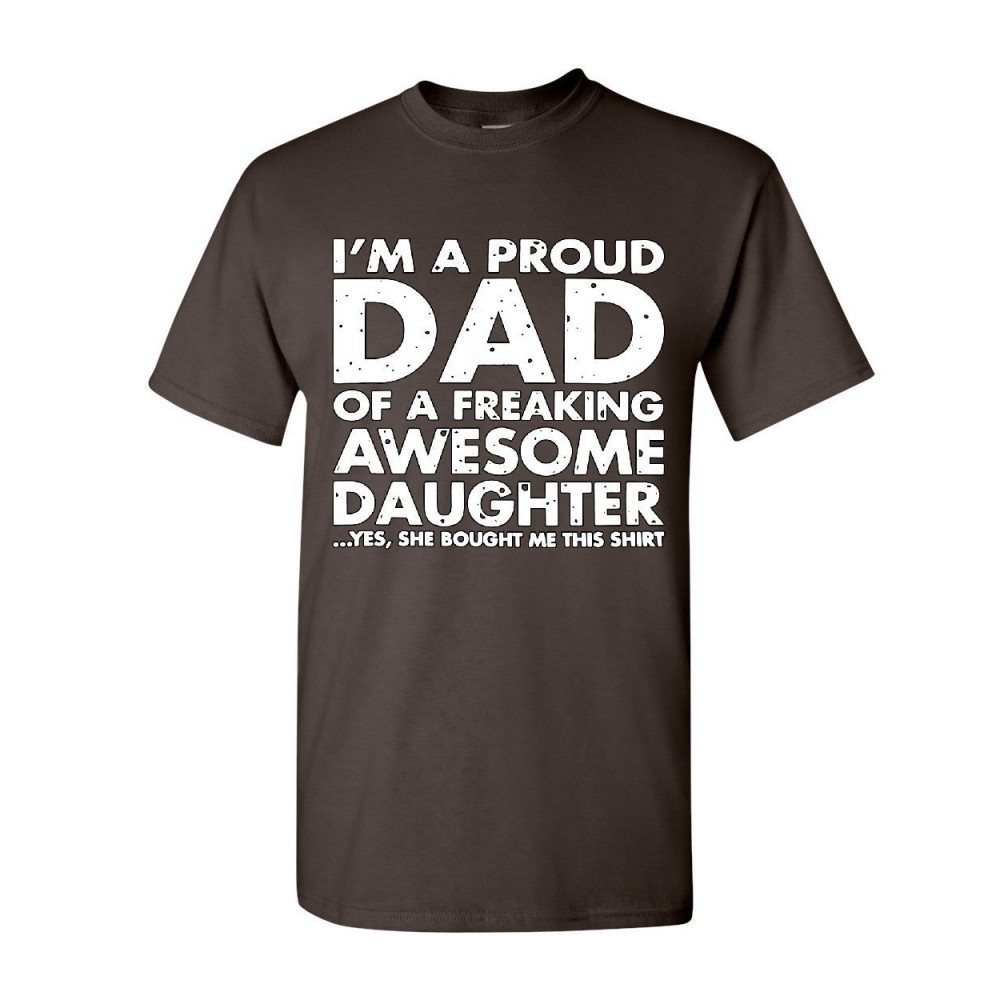 PROUD DAD OF FREAKING AWESOME DAUGHTER t-shirt father's day cotton tee brown