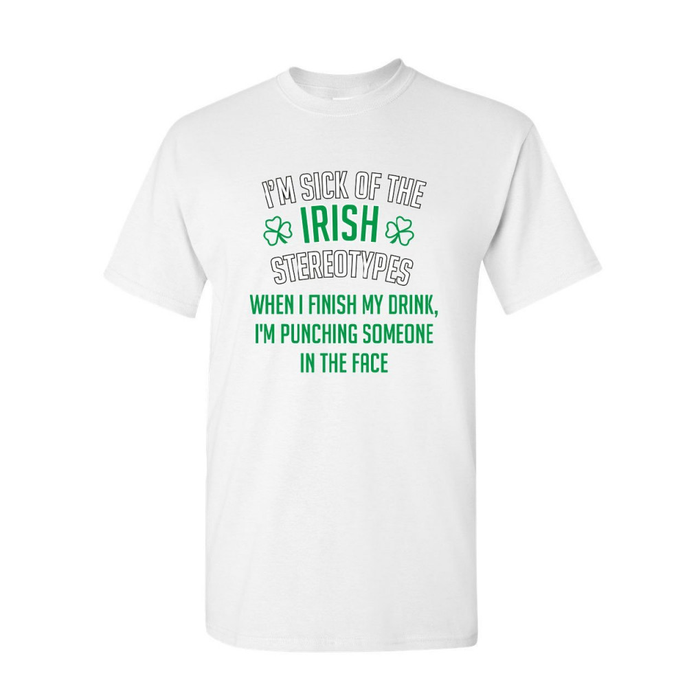 SICK OF THE IRISH STEREOTYPES i'm sick of irish stereotypes t-shirt st. patrick's day beer pub mens tee shirt white