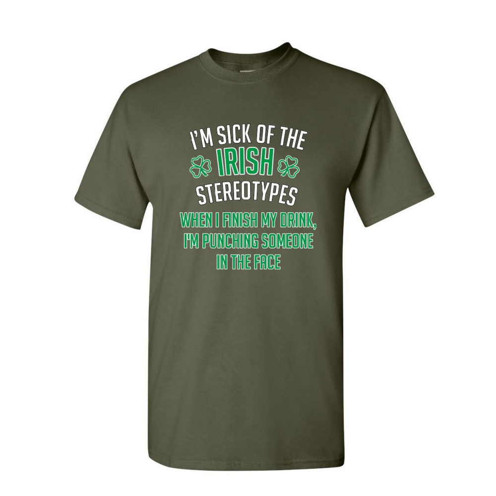 SICK OF THE IRISH STEREOTYPES i'm sick of irish stereotypes t-shirt st. patrick's day beer pub mens tee shirt military green