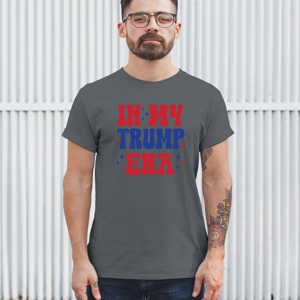 Declare your pride with this "In My Trump Era" design. Perfect for Trump supporters embracing America First, Republican values, and freedom.