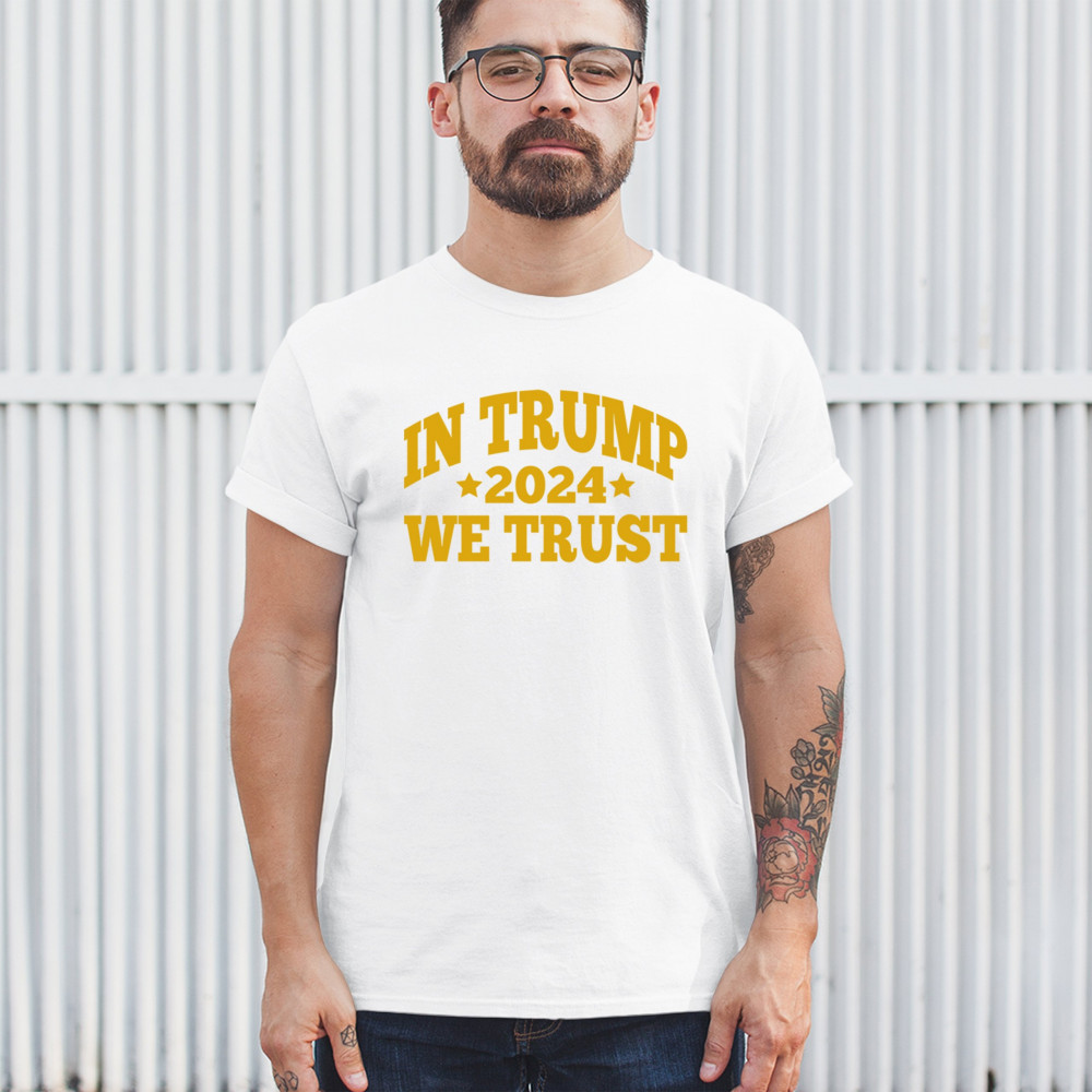 Show your unwavering trust in President Trump with our 'In Trump We Trust 2024' design. Perfect for proud supporters of America first. Join the movement.