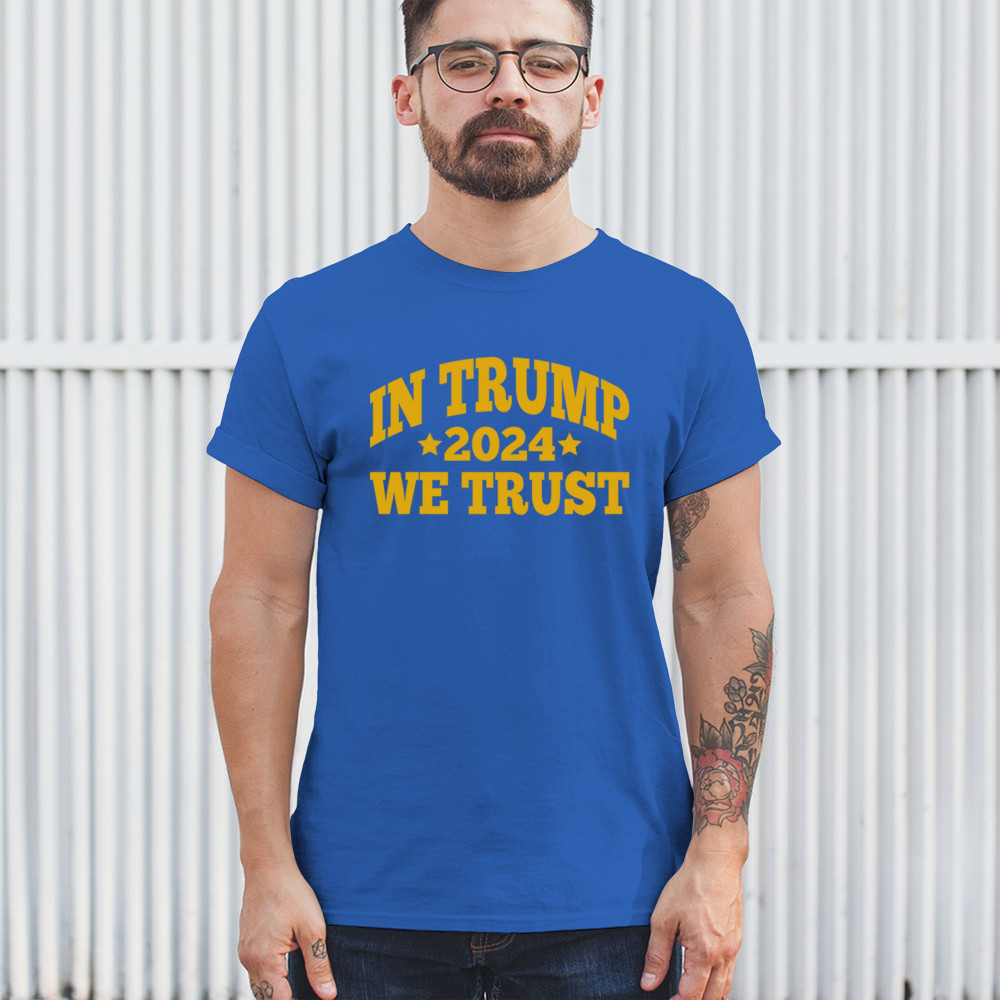 Show your unwavering trust in President Trump with our 'In Trump We Trust 2024' design. Perfect for proud supporters of America first. Join the movement.