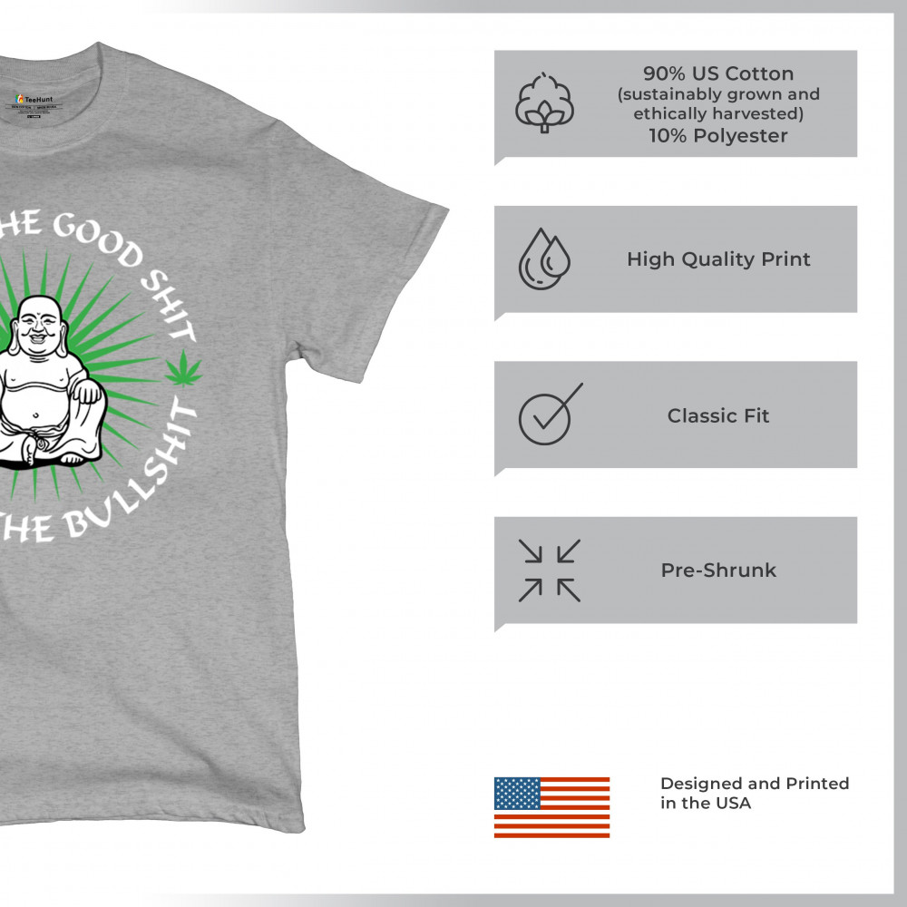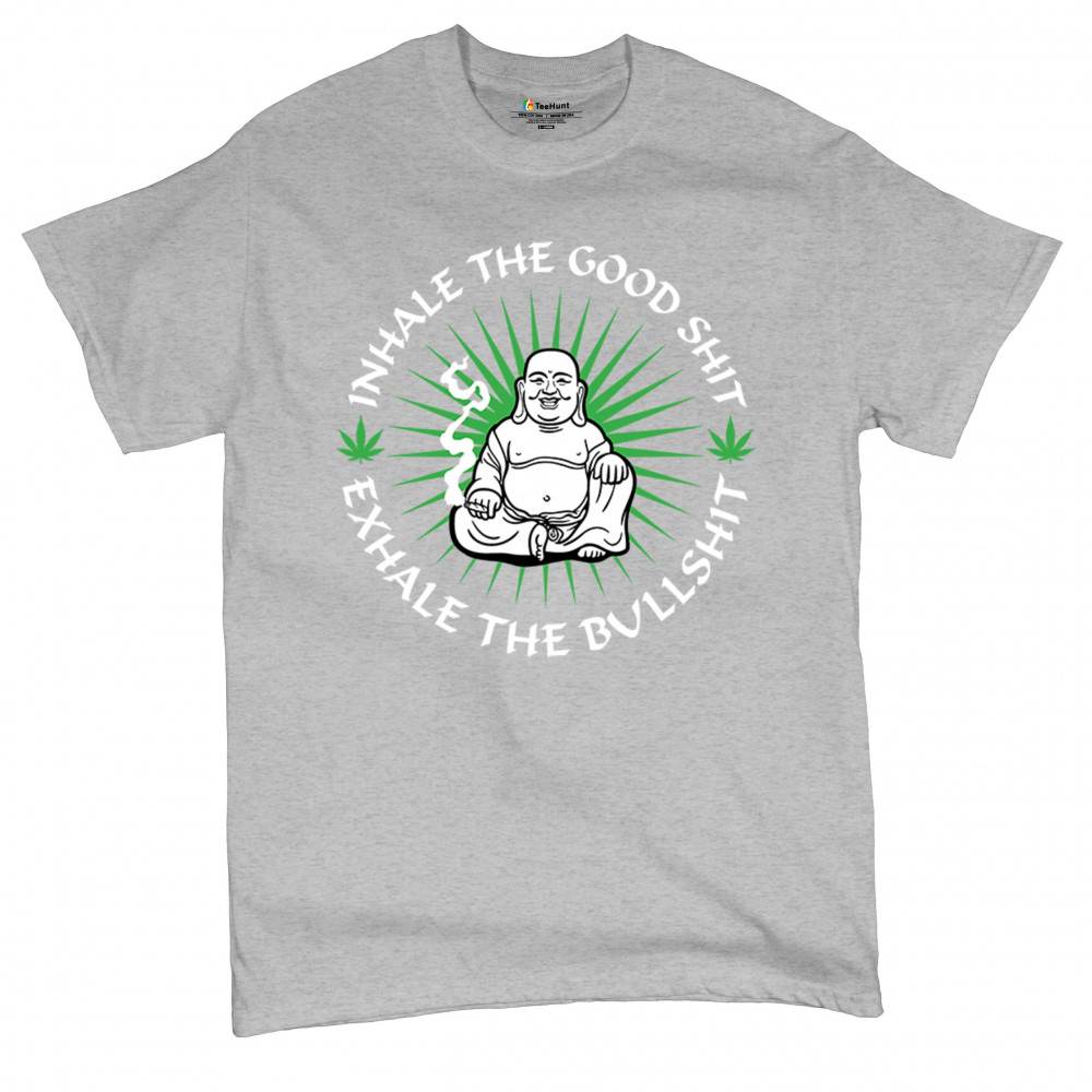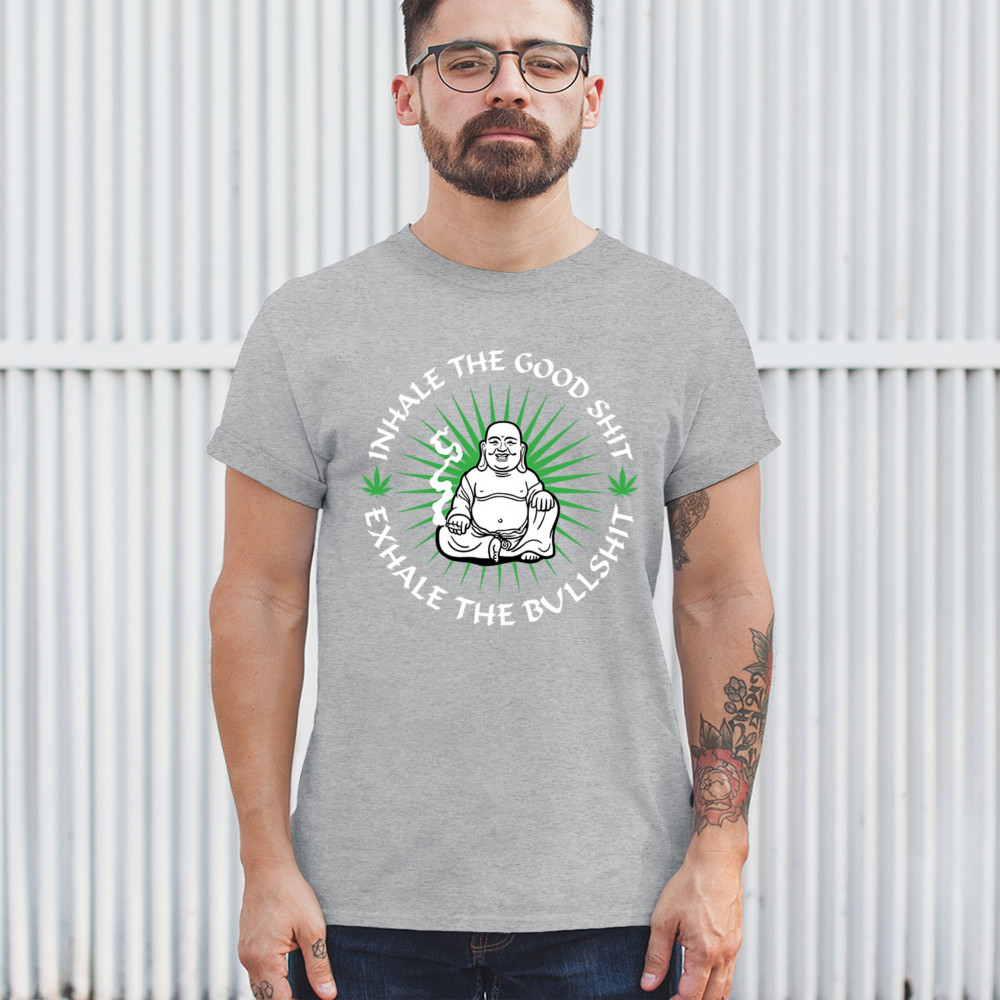 This hilarious and zen-inspired design features a happy Buddha with a joint, surrounded by cannabis leaves. “Inhale the Good Shit, Exhale the Bullshit†delivers chill stoner wisdom with a wink. Ideal for mindful marijuana lovers, 420 fans, or spiritual rebels with a sense of humor and a love for weed.