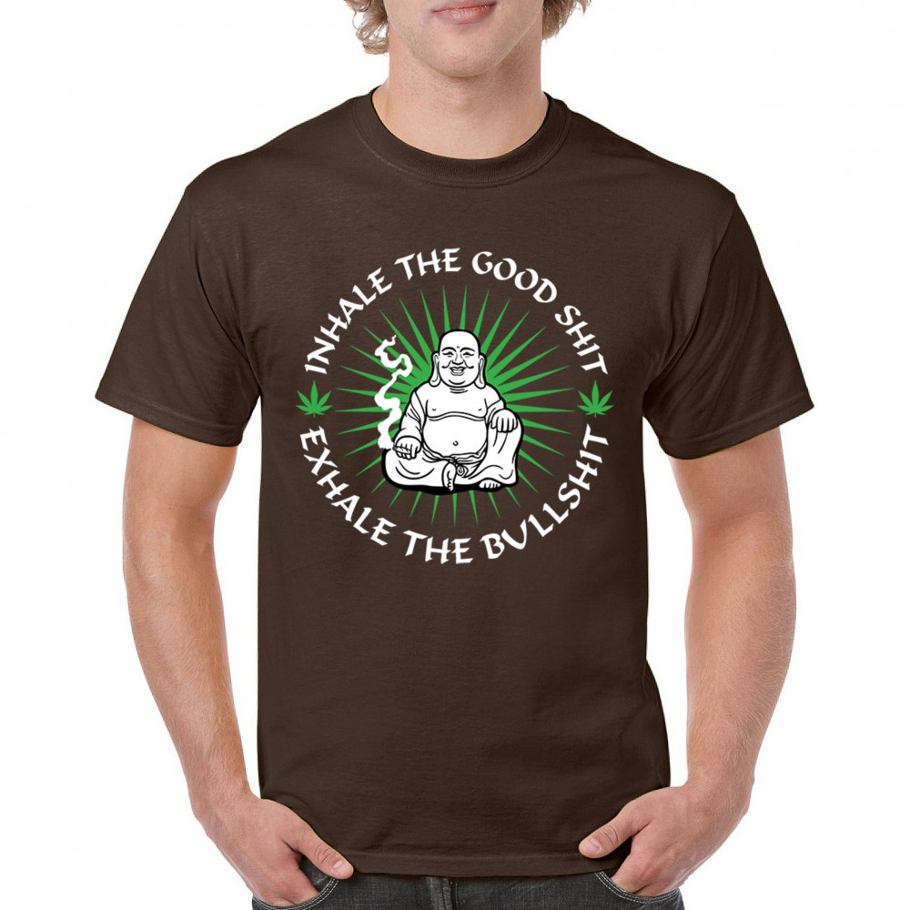 Stoner Buddha design with weed leaves and funny zen slogan—perfect for chill 420 lovers who inhale peace and exhale the BS.