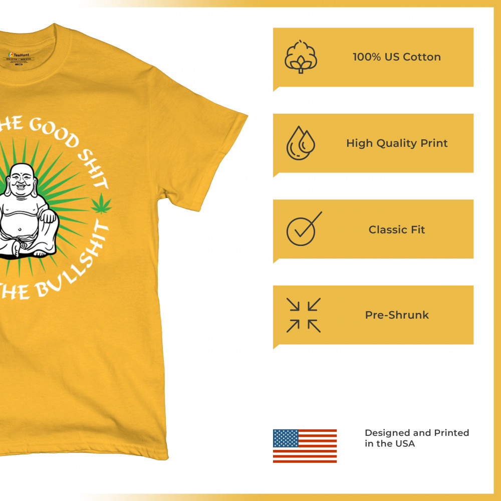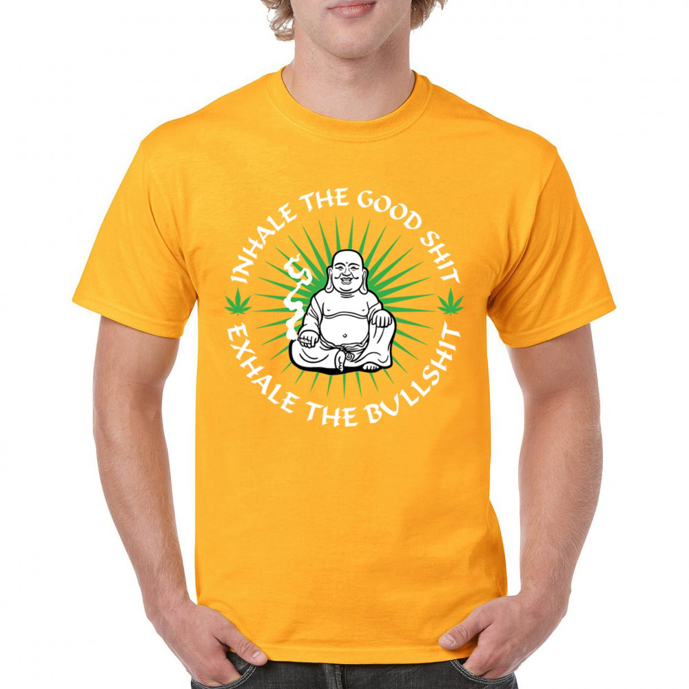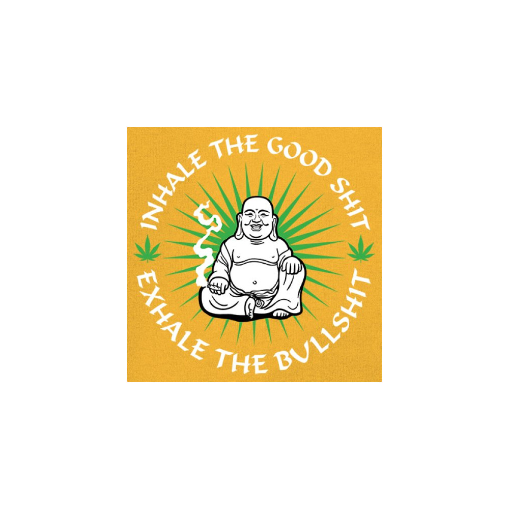 This hilarious and zen-inspired design features a happy Buddha with a joint, surrounded by cannabis leaves. “Inhale the Good Shit, Exhale the Bullshit†delivers chill stoner wisdom with a wink. Ideal for mindful marijuana lovers, 420 fans, or spiritual rebels with a sense of humor and a love for weed.