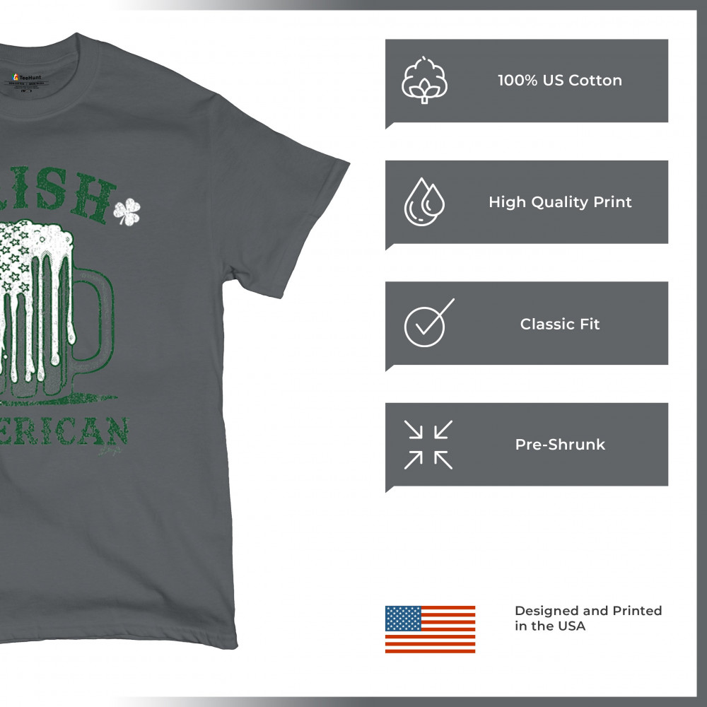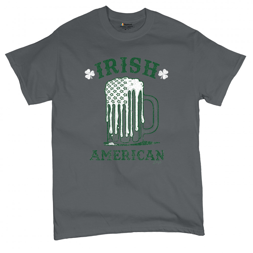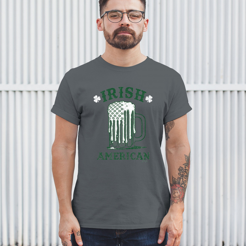 IRISH AMERICAN ST PATRICK'S DAY t-shirt shamrock shenanigans beer men's tee charcoal