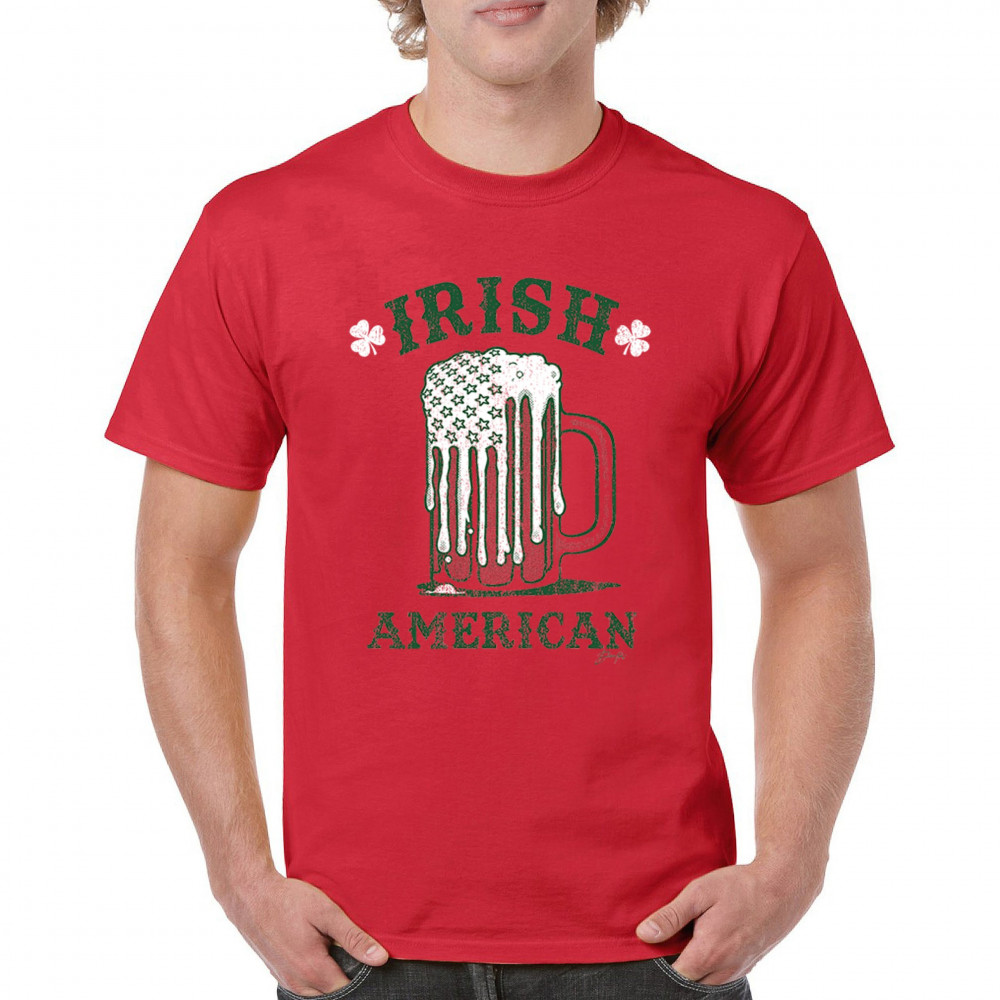IRISH AMERICAN ST PATRICK'S DAY t-shirt shamrock shenanigans beer men's tee red