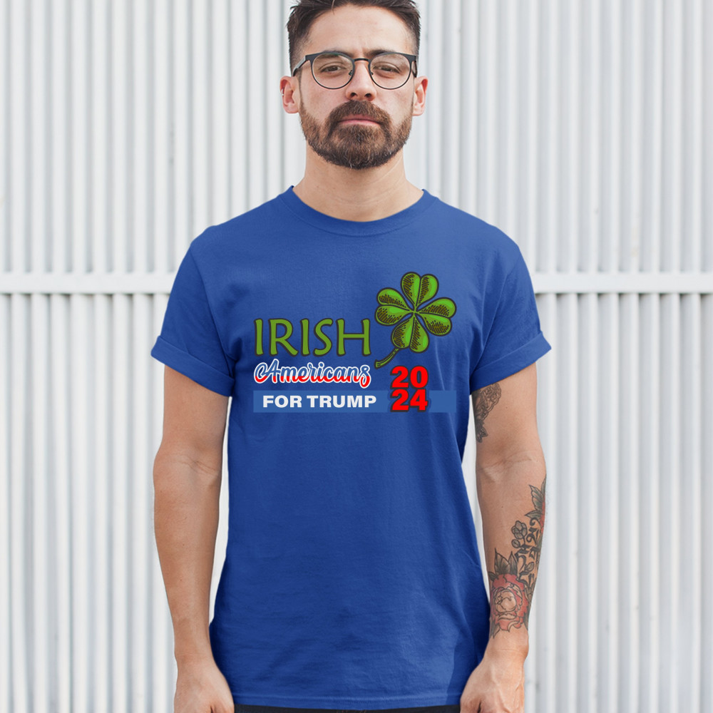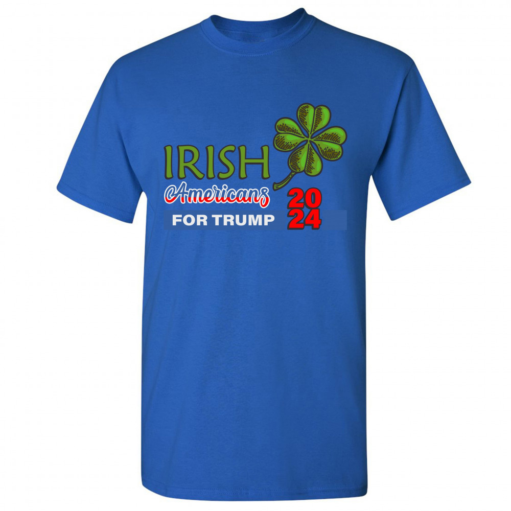 IRISH AMERICANS FOR TRUMP t-shirt pro donald trump 2024 shamrock men's tee royal blue
