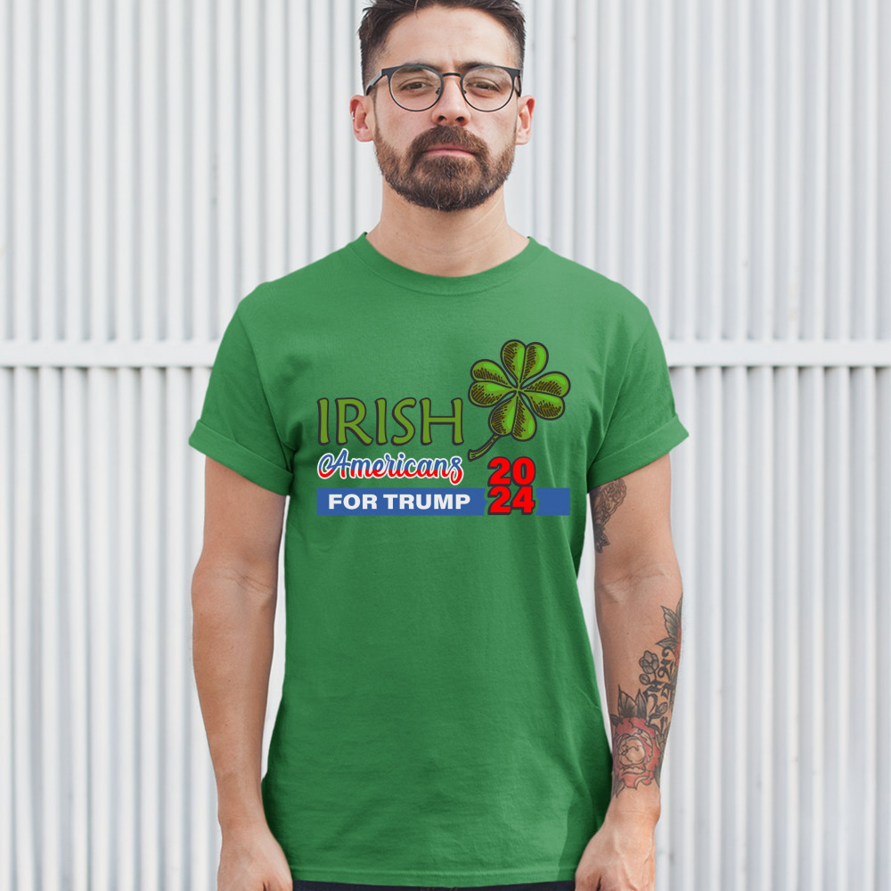 IRISH AMERICANS FOR TRUMP t-shirt pro donald trump 2024 shamrock men's tee green