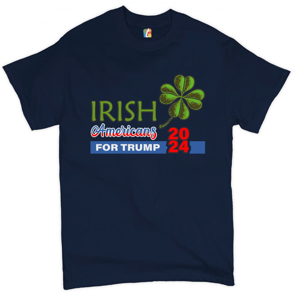 IRISH AMERICANS FOR TRUMP t-shirt pro donald trump 2024 shamrock men's tee navy blue