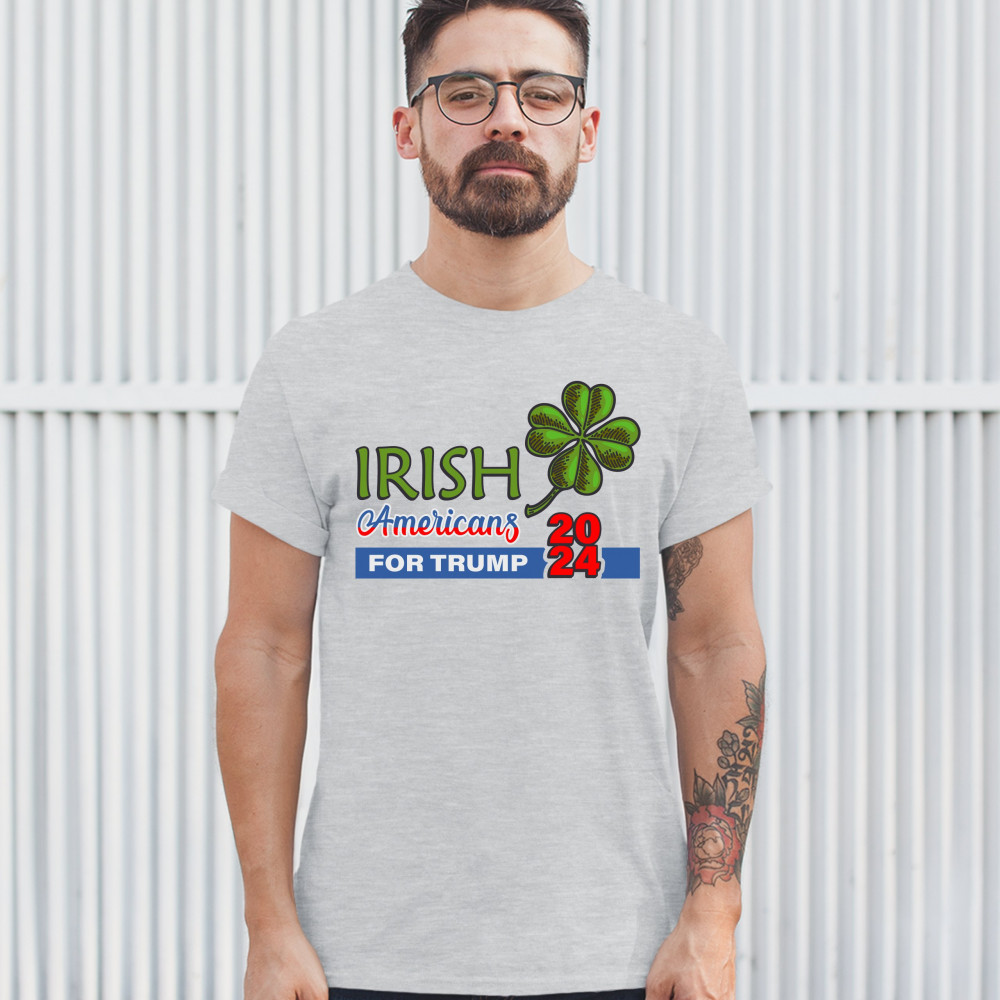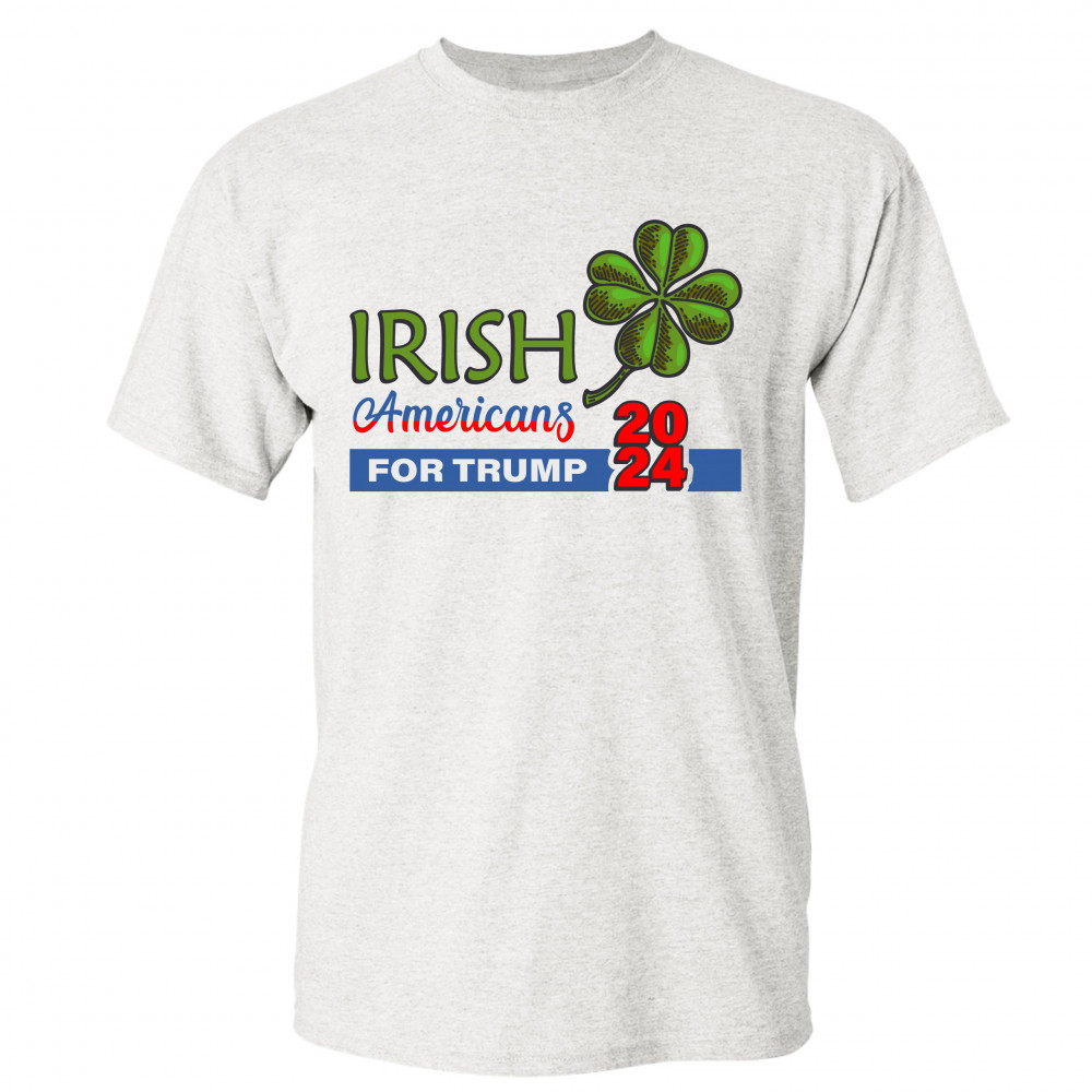 IRISH AMERICANS FOR TRUMP t-shirt pro donald trump 2024 shamrock men's tee ash gray