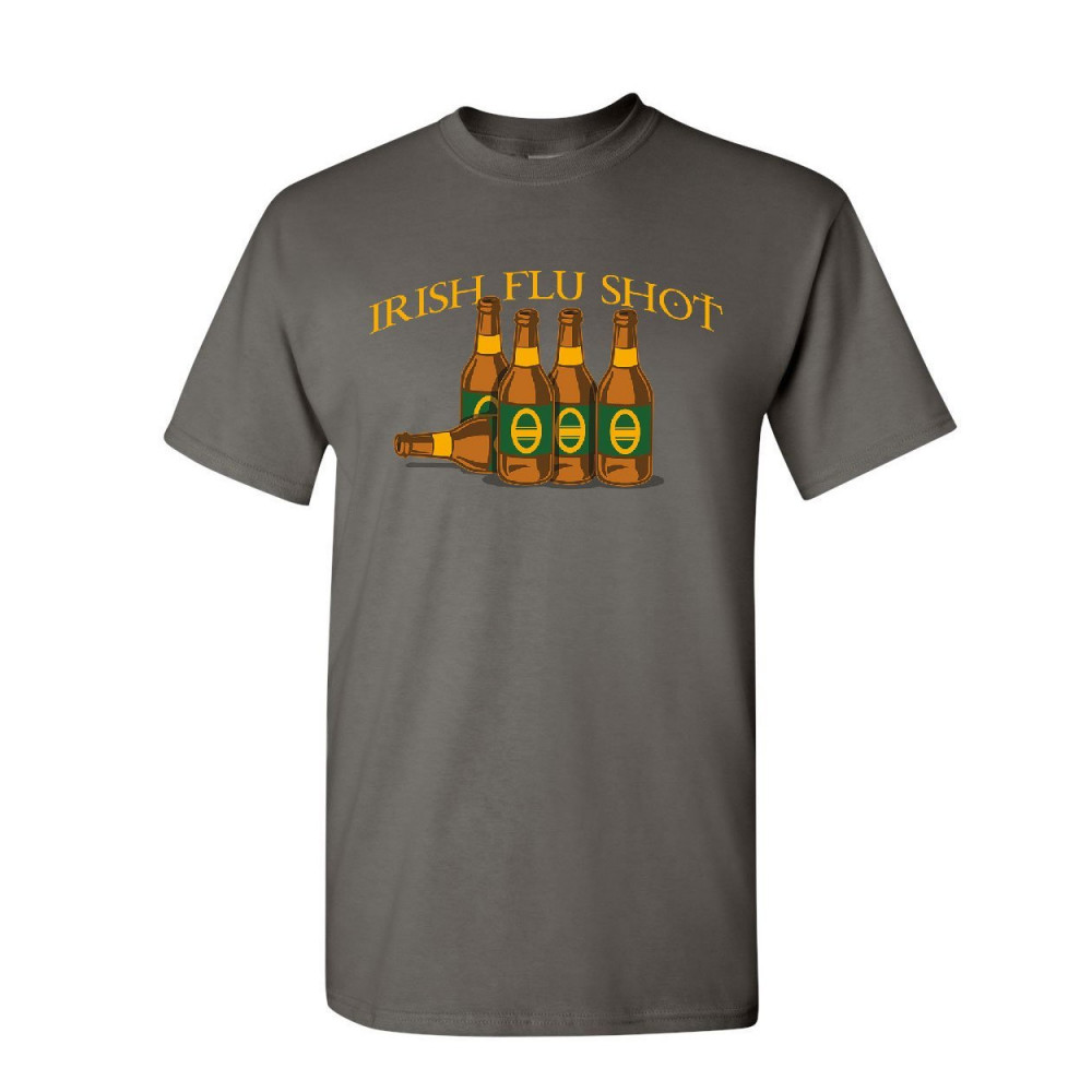 IRISH FLU SHOT FUNNY t-shirt st patrick's day pubs drinking beer mens tee shirt charcoal