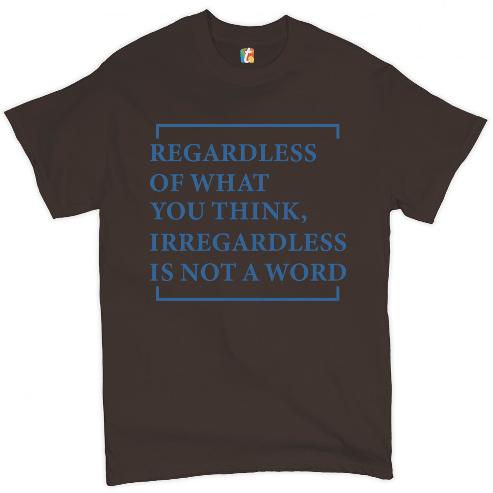 IRREGARDLESS IS NOT A WORD t-shirt funny english grammar men's tee brown