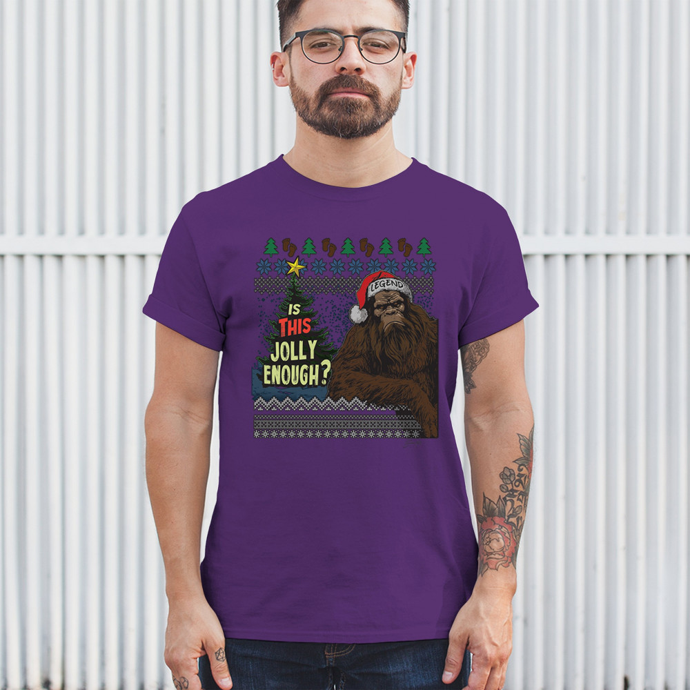 Add humor to your holiday season with the "Is This Jolly Enough?" design, featuring a legendary creature ready for Christmas cheer. Perfect for holiday gatherings and cozy winter nights!