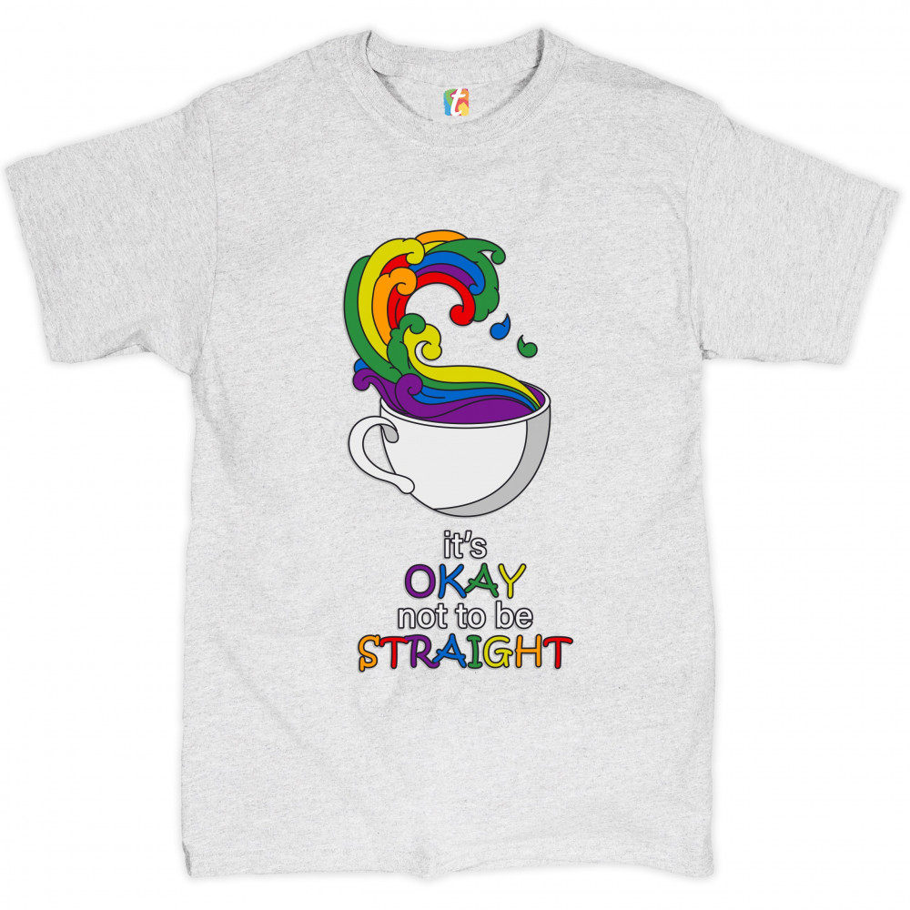 IT'S OKAY NOT TO BE STRAIGHT t-shirt gay acceptance lgbtq pride men's tee ash gray