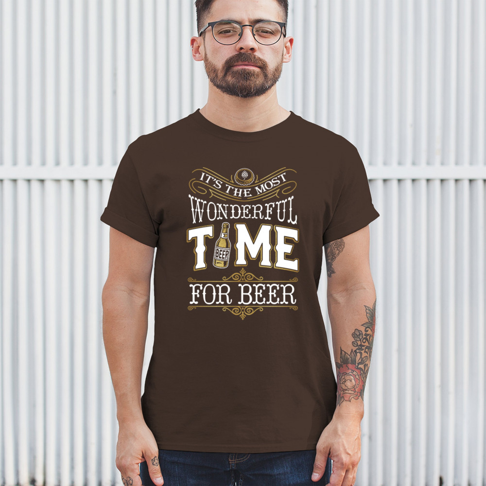 Bring some holiday cheer to your wardrobe with our "It's The Most Wonderful Time for Beer" design. Featuring a festive beer bottle and playful text, this design is perfect for adding humor to holiday gatherings, beer festivals, or any casual outing. Ideal for beer lovers and brew enthusiasts, it makes a fantastic gift for those who appreciate beer-themed fun. Embrace the season and your love for beer with this delightful and humorous design!