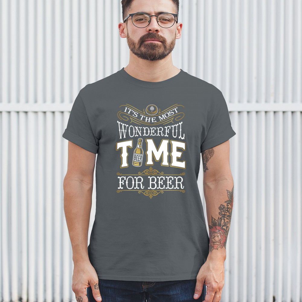 Bring some holiday cheer to your wardrobe with our "It's The Most Wonderful Time for Beer" design. Featuring a festive beer bottle and playful text, this design is perfect for adding humor to holiday gatherings, beer festivals, or any casual outing. Ideal for beer lovers and brew enthusiasts, it makes a fantastic gift for those who appreciate beer-themed fun. Embrace the season and your love for beer with this delightful and humorous design!