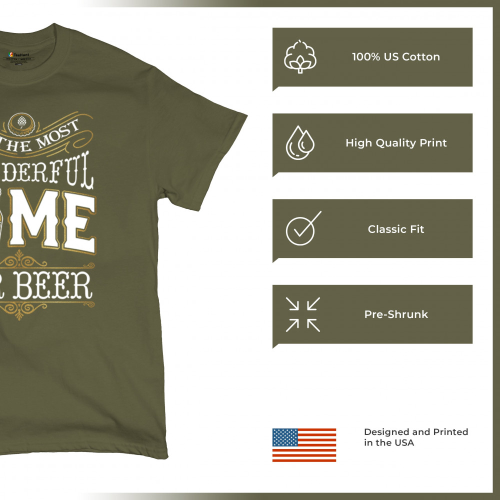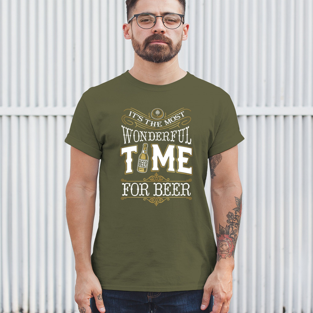 Bring some holiday cheer to your wardrobe with our "It's The Most Wonderful Time for Beer" design. Featuring a festive beer bottle and playful text, this design is perfect for adding humor to holiday gatherings, beer festivals, or any casual outing. Ideal for beer lovers and brew enthusiasts, it makes a fantastic gift for those who appreciate beer-themed fun. Embrace the season and your love for beer with this delightful and humorous design!
