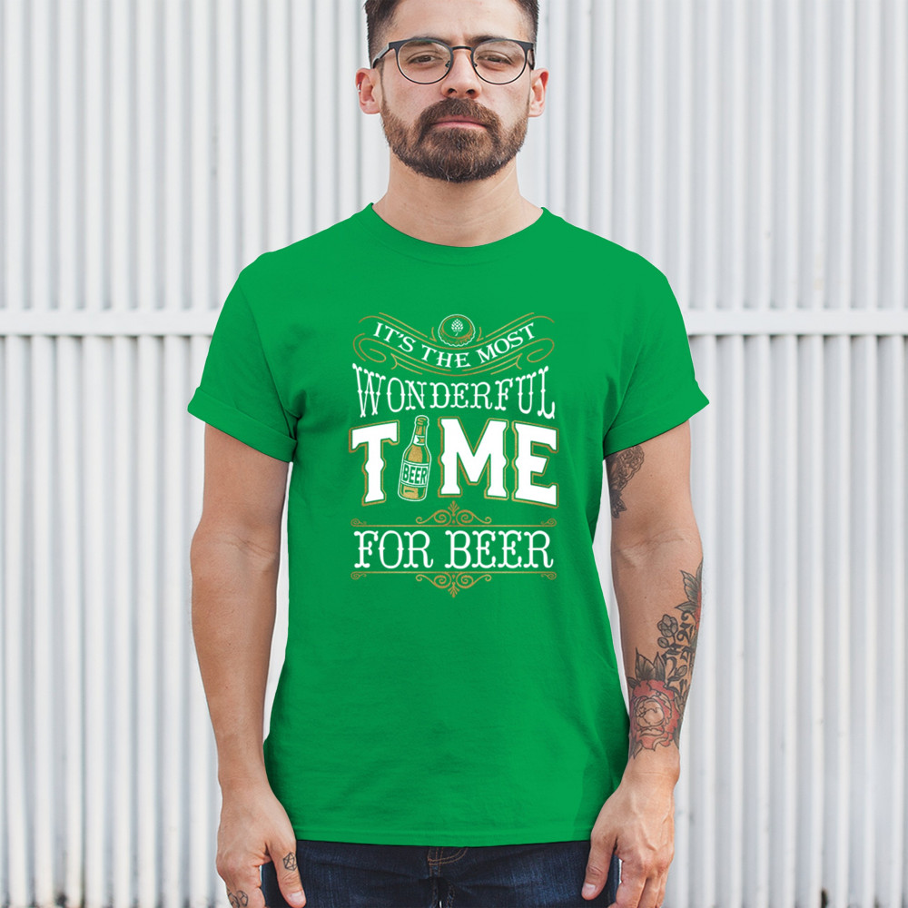 Bring some holiday cheer to your wardrobe with our "It's The Most Wonderful Time for Beer" design. Featuring a festive beer bottle and playful text, this design is perfect for adding humor to holiday gatherings, beer festivals, or any casual outing. Ideal for beer lovers and brew enthusiasts, it makes a fantastic gift for those who appreciate beer-themed fun. Embrace the season and your love for beer with this delightful and humorous design!