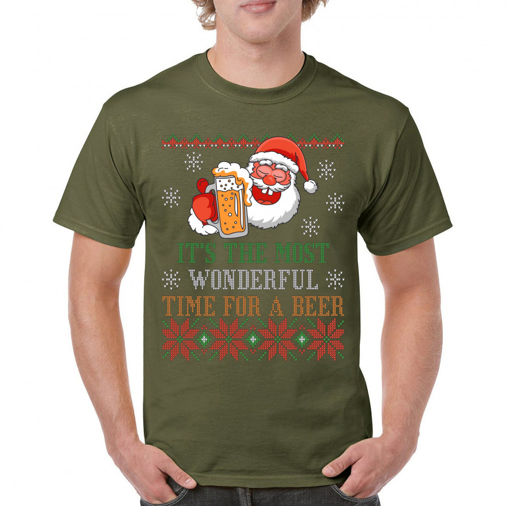 IT'S THE MOST WONDERFUL TIME FOR A BEER t-shirt ugly sweater men's tee military green