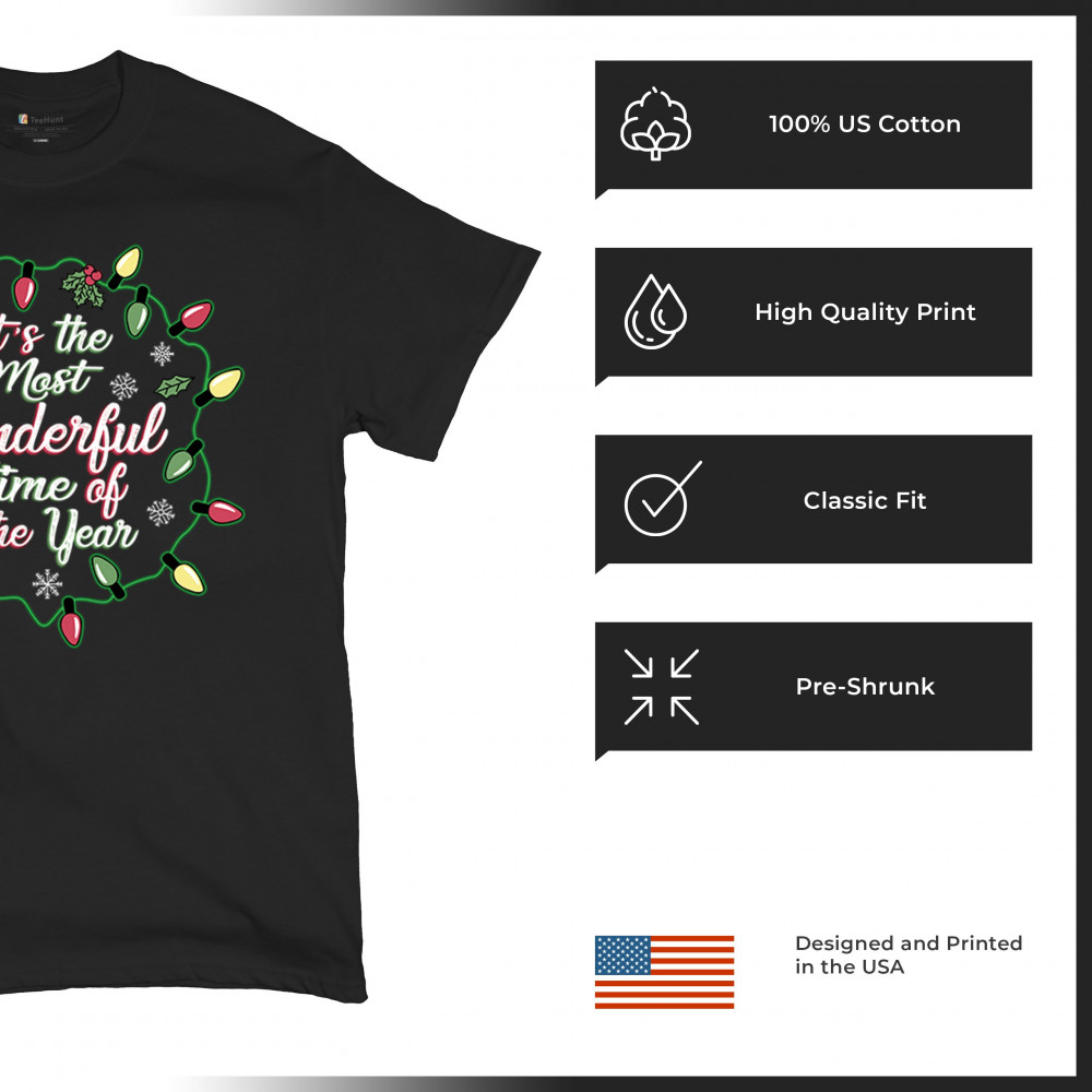 IT'S THE MOST WONDERFUL TIME OF THE YEAR t-shirt christmas jolly men's tee black