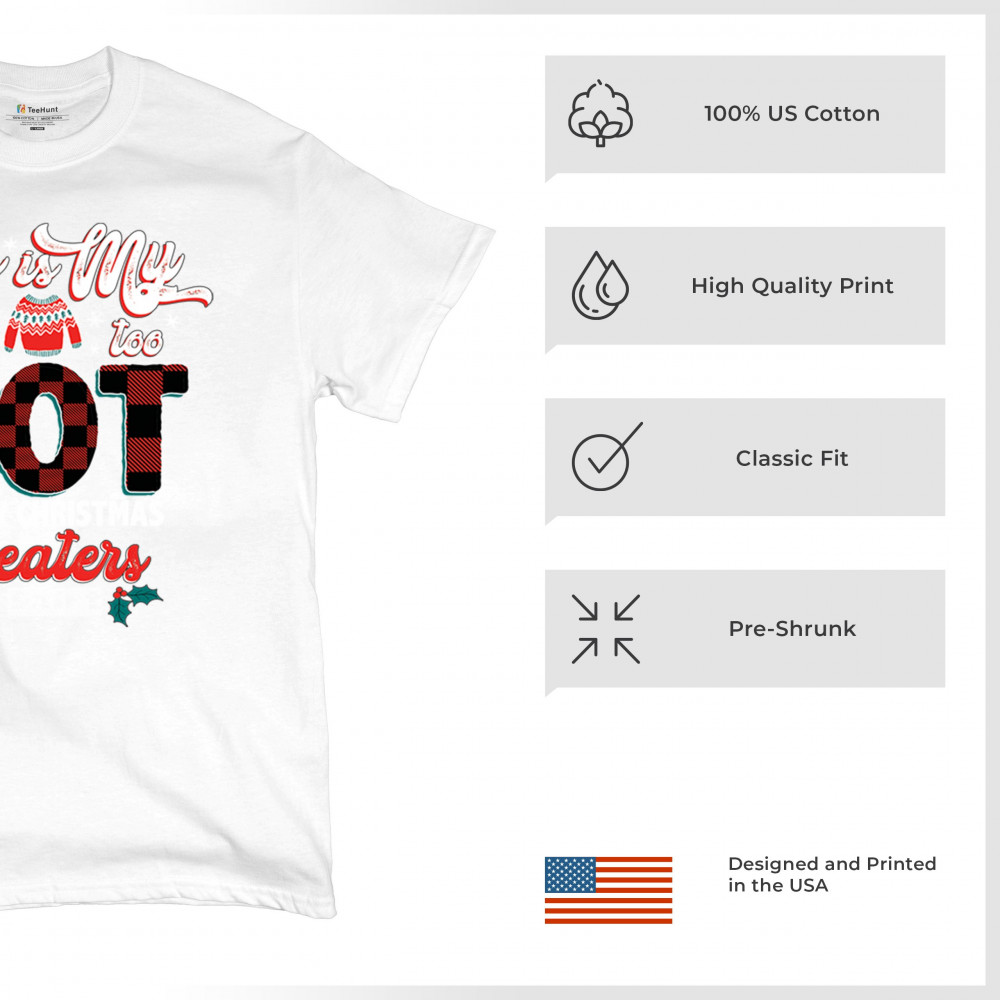 Stay festive without the extra warmth! This "Too Hot for Ugly Christmas Sweaters" shirt is perfect for those who love Christmas cheer with a lighthearted touch.