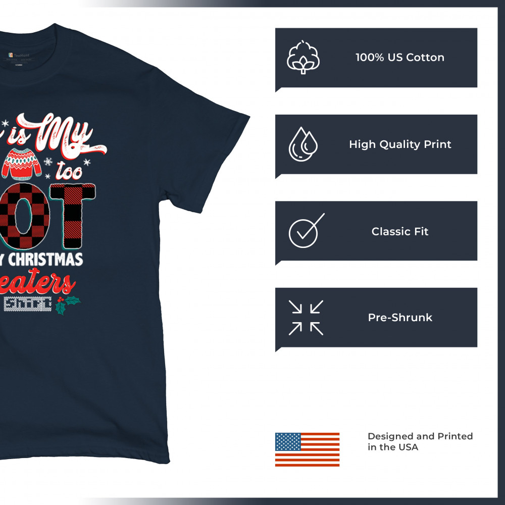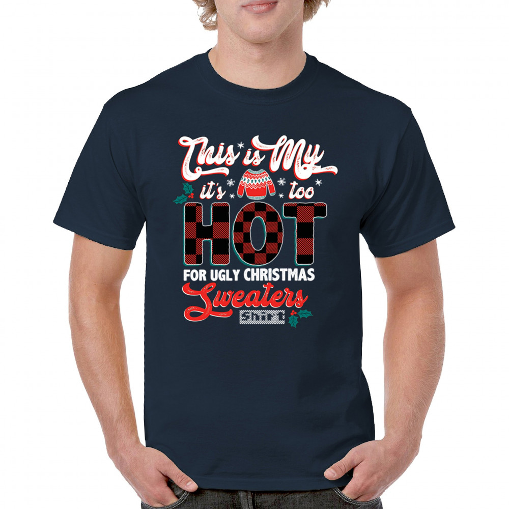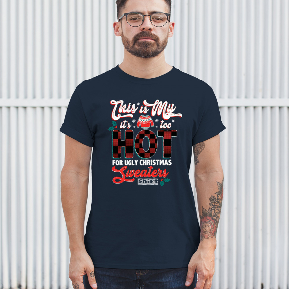 Stay festive without the extra warmth! This "Too Hot for Ugly Christmas Sweaters" shirt is perfect for those who love Christmas cheer with a lighthearted touch.