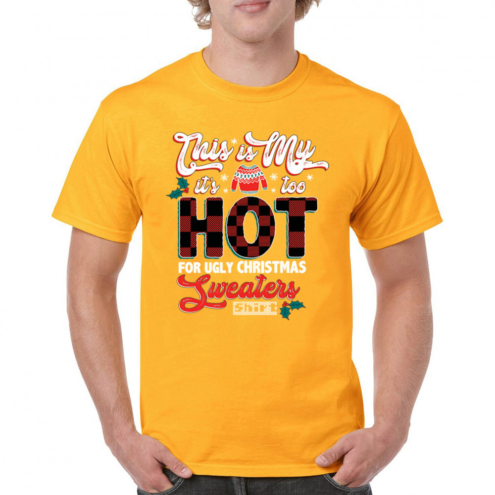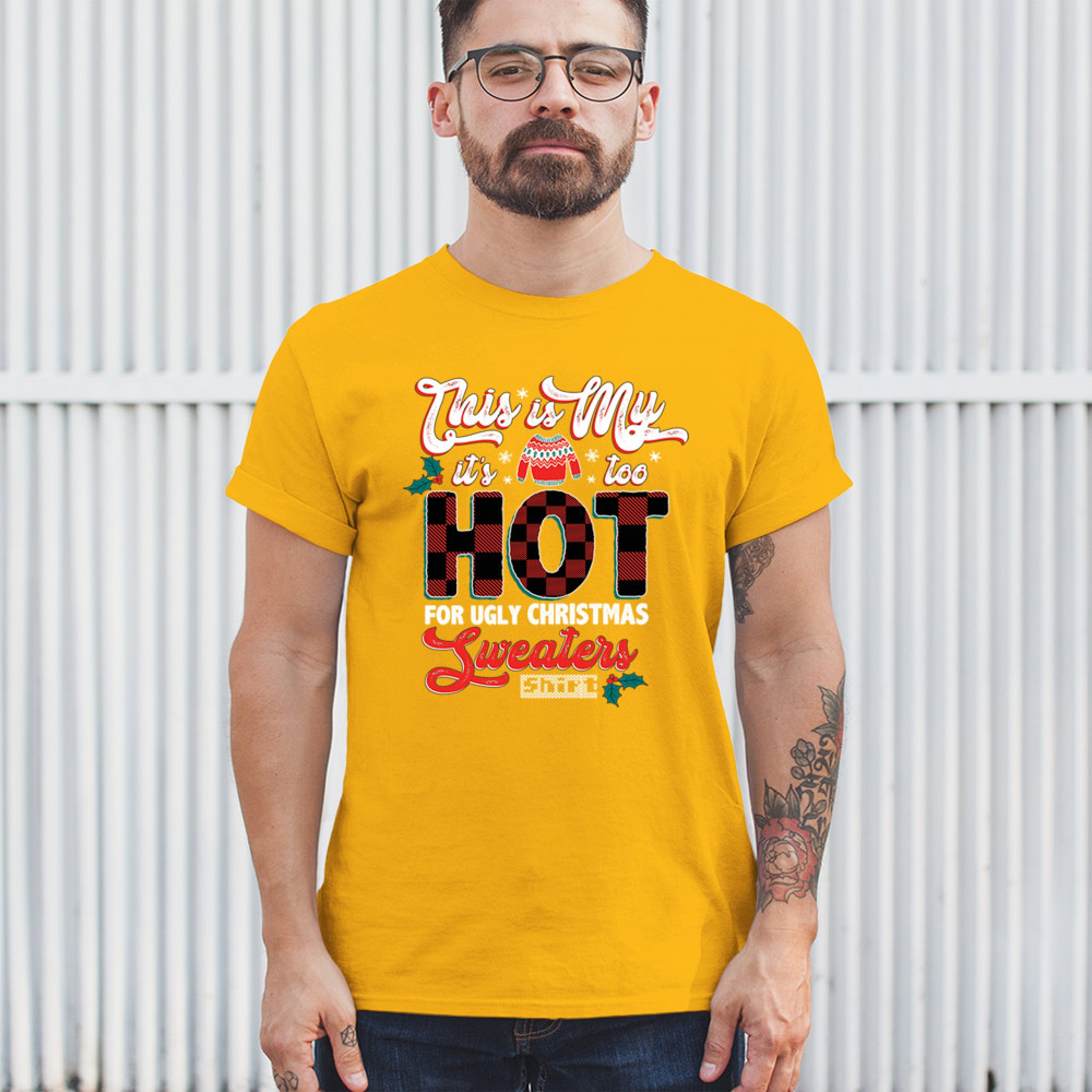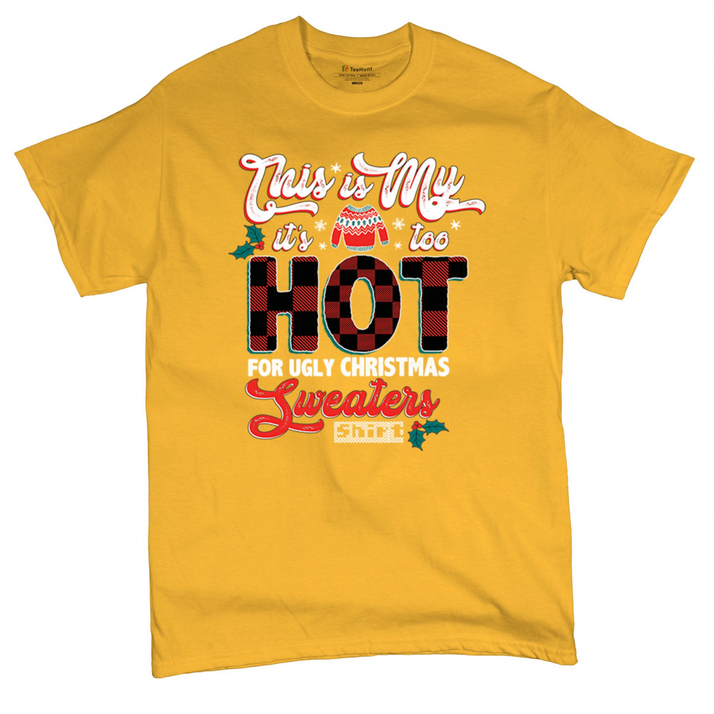 Stay festive without the extra warmth! This "Too Hot for Ugly Christmas Sweaters" shirt is perfect for those who love Christmas cheer with a lighthearted touch.