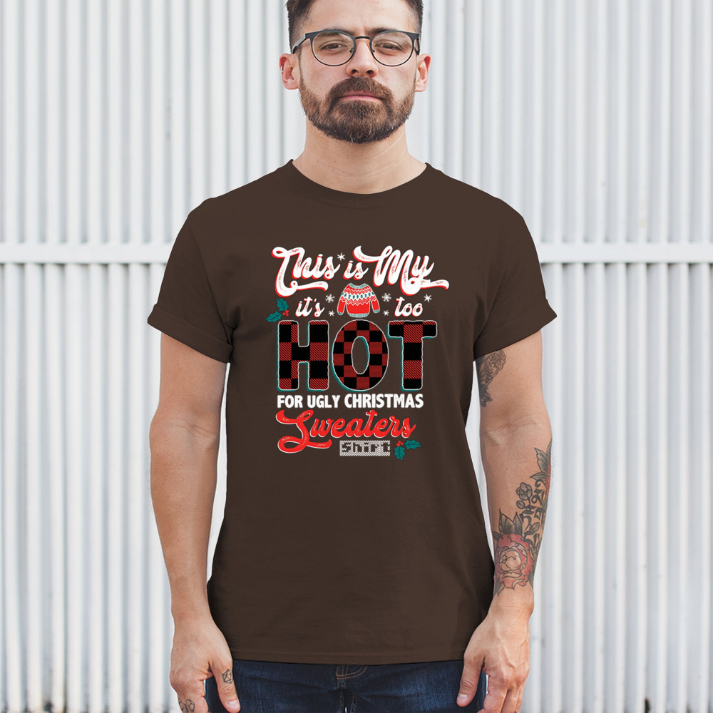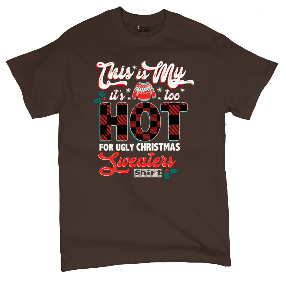 Stay festive without the extra warmth! This "Too Hot for Ugly Christmas Sweaters" shirt is perfect for those who love Christmas cheer with a lighthearted touch.