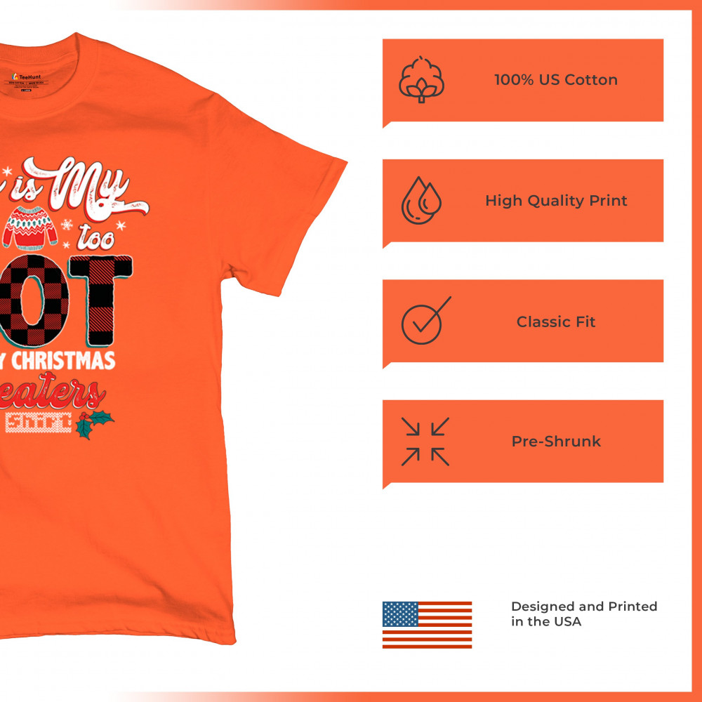 Stay festive without the extra warmth! This "Too Hot for Ugly Christmas Sweaters" shirt is perfect for those who love Christmas cheer with a lighthearted touch.