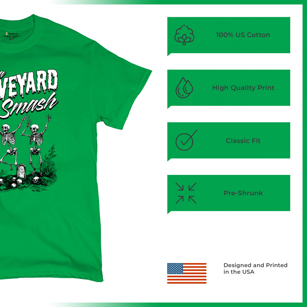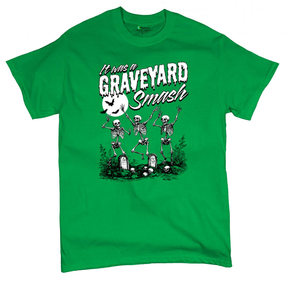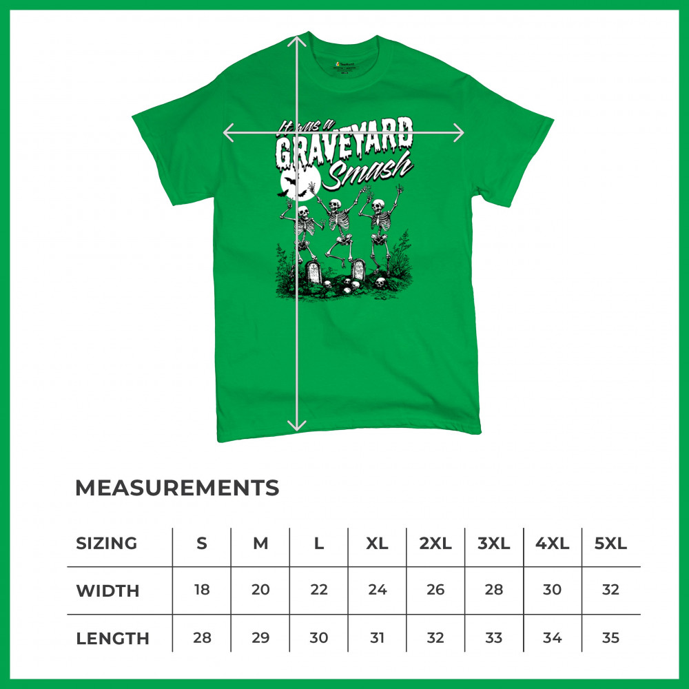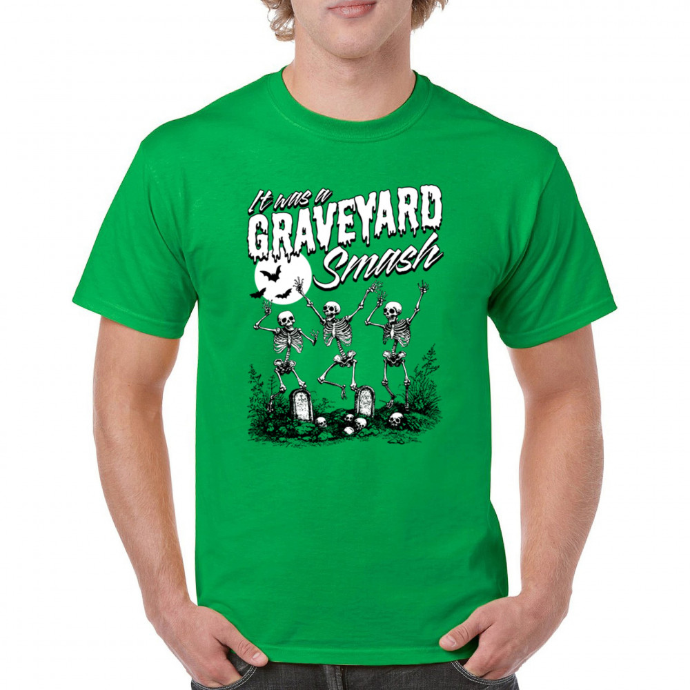 Add a touch of spooky fun to your Halloween attire with this "Graveyard Smash" design, showcasing skeletons dancing under the moonlight in a graveyard. Ideal for anyone who loves Halloween, this graphic tee is perfect for parties, haunted houses, or casual trick-or-treating. Made from high-quality materials, it offers both comfort and style, ensuring you look great while embracing the festive spirit. Available in multiple sizes, this shirt is a must-have for your Halloween collection.