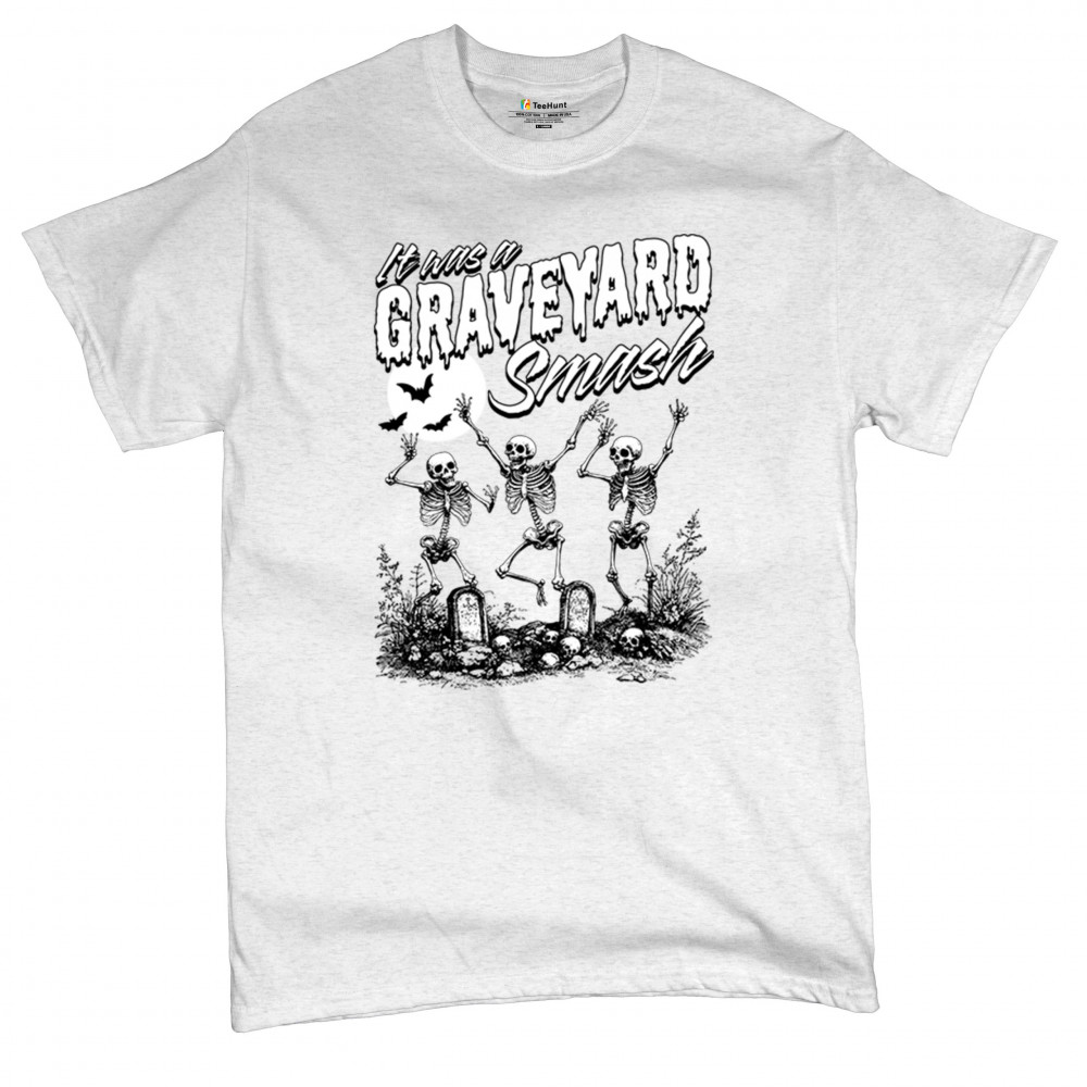 Add a touch of spooky fun to your Halloween attire with this "Graveyard Smash" design, showcasing skeletons dancing under the moonlight in a graveyard. Ideal for anyone who loves Halloween, this graphic tee is perfect for parties, haunted houses, or casual trick-or-treating. Made from high-quality materials, it offers both comfort and style, ensuring you look great while embracing the festive spirit. Available in multiple sizes, this shirt is a must-have for your Halloween collection.