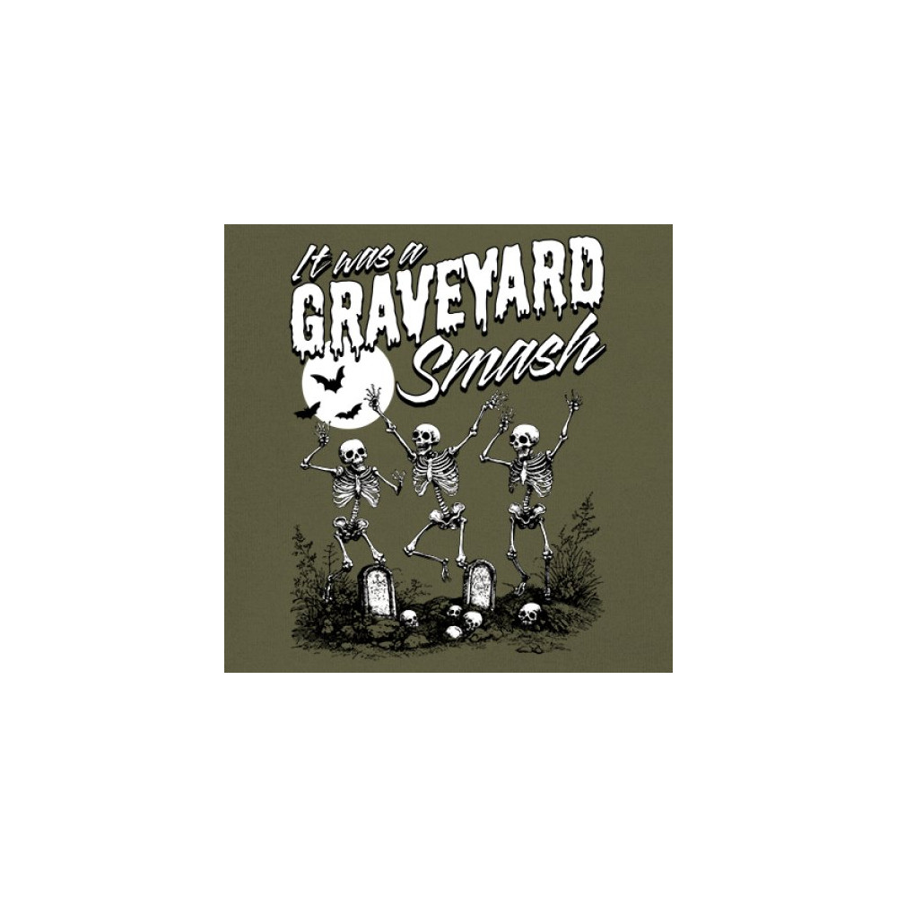 Celebrate Halloween with a fun "Graveyard Smash" design featuring dancing skeletons. Perfect for parties and haunted house events!