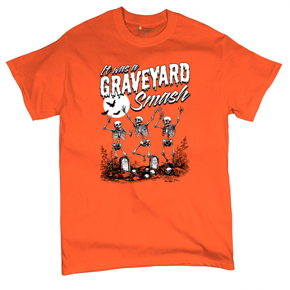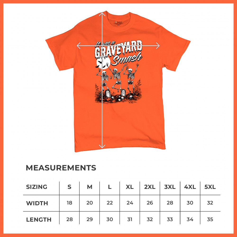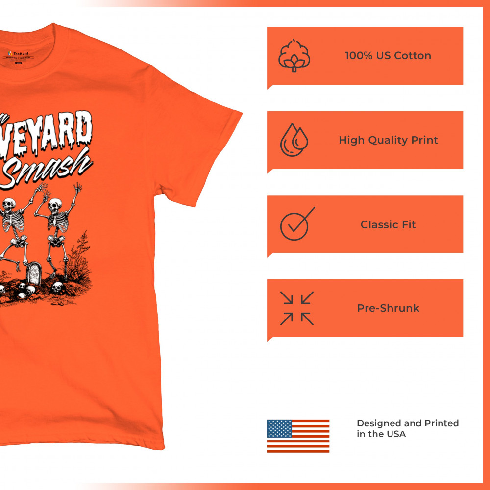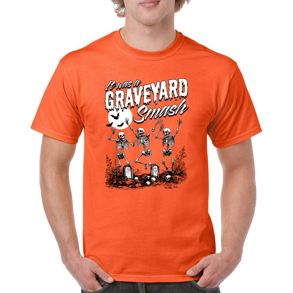 Add a touch of spooky fun to your Halloween attire with this "Graveyard Smash" design, showcasing skeletons dancing under the moonlight in a graveyard. Ideal for anyone who loves Halloween, this graphic tee is perfect for parties, haunted houses, or casual trick-or-treating. Made from high-quality materials, it offers both comfort and style, ensuring you look great while embracing the festive spirit. Available in multiple sizes, this shirt is a must-have for your Halloween collection.
