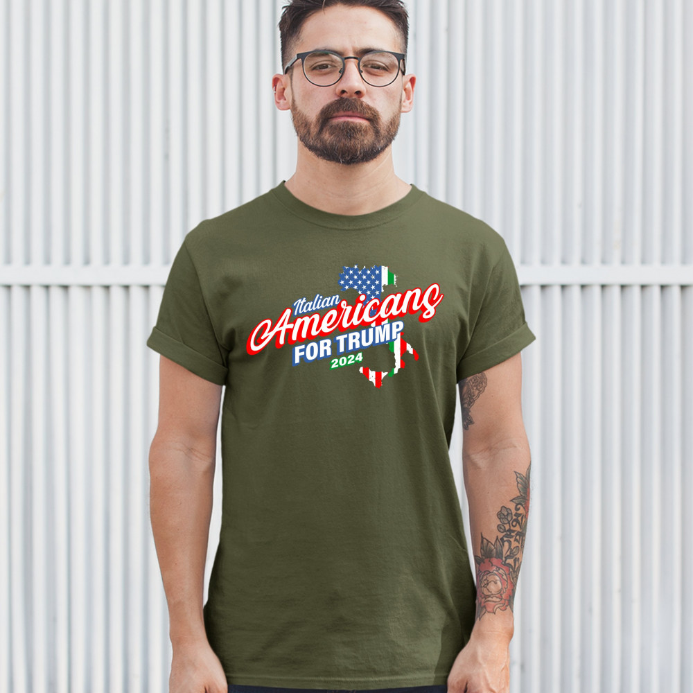 ITALIAN AMERICANS FOR TRUMP 2024 t-shirt keep america great maga men's tee military green