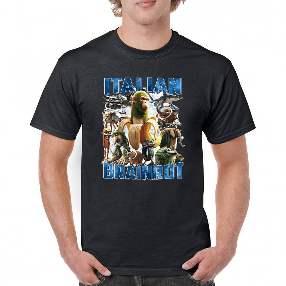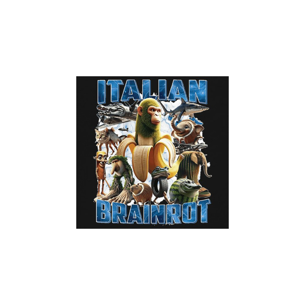 This design captures the full force of Italian brainrot—bananas, sharks, monkeys, and meme beasts collide in an unfiltered internet-core explosion. Perfect for fans of cursed humor, Gen Z trends, absurd fashion, TikTok memes, ironic style, surreal pop art, chaotic culture, digital nonsense, Gen Alpha brainrot, and hyper-online energy.